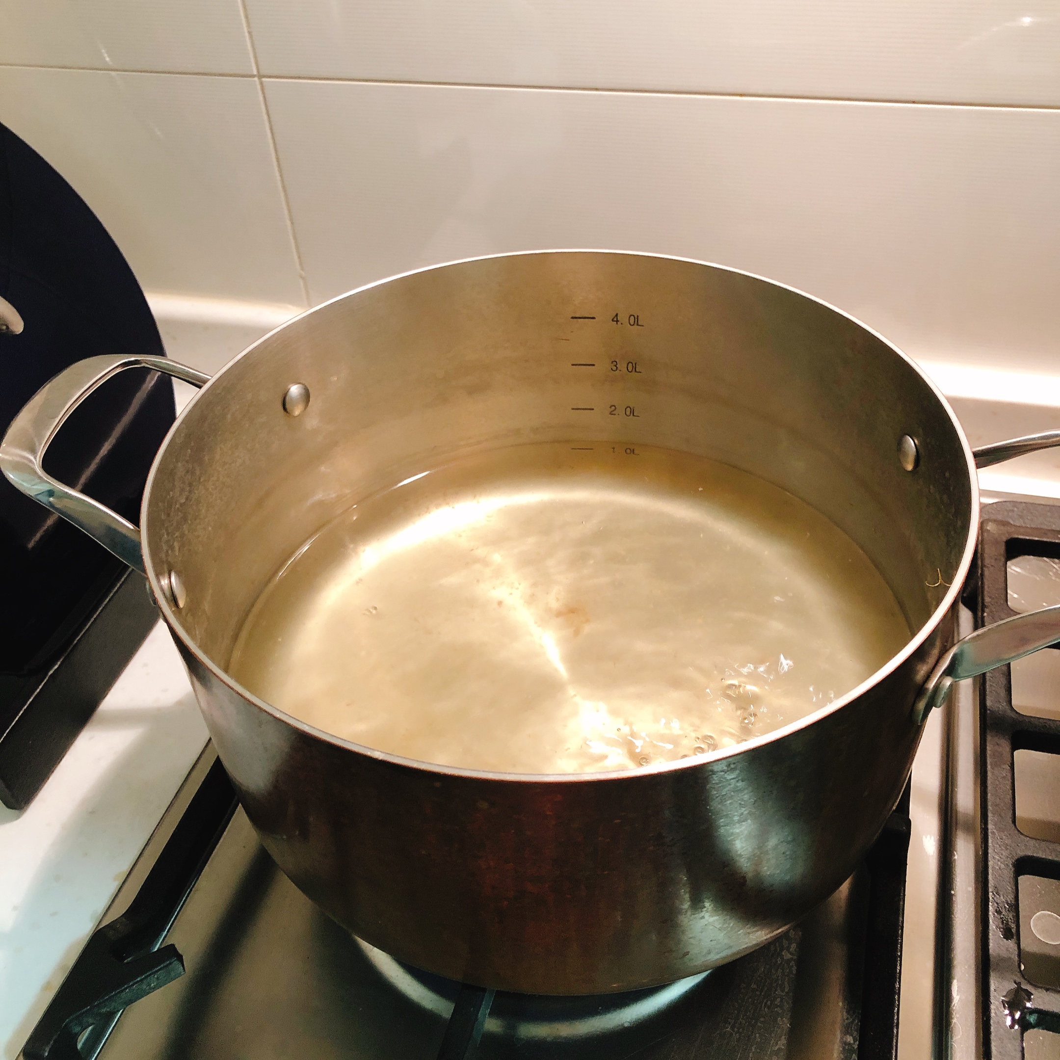 前一天晚上睡覺前,準備一個玻璃容器先將乾香菇(4朵)泡入水(400ml)中並蓋起來常溫保存。當天要煮飯時,乾香菇已泡軟可以切成細絲備用;容器中珍貴的『香菇水』乘載著滿滿的香氣,可以拿來製作高湯。