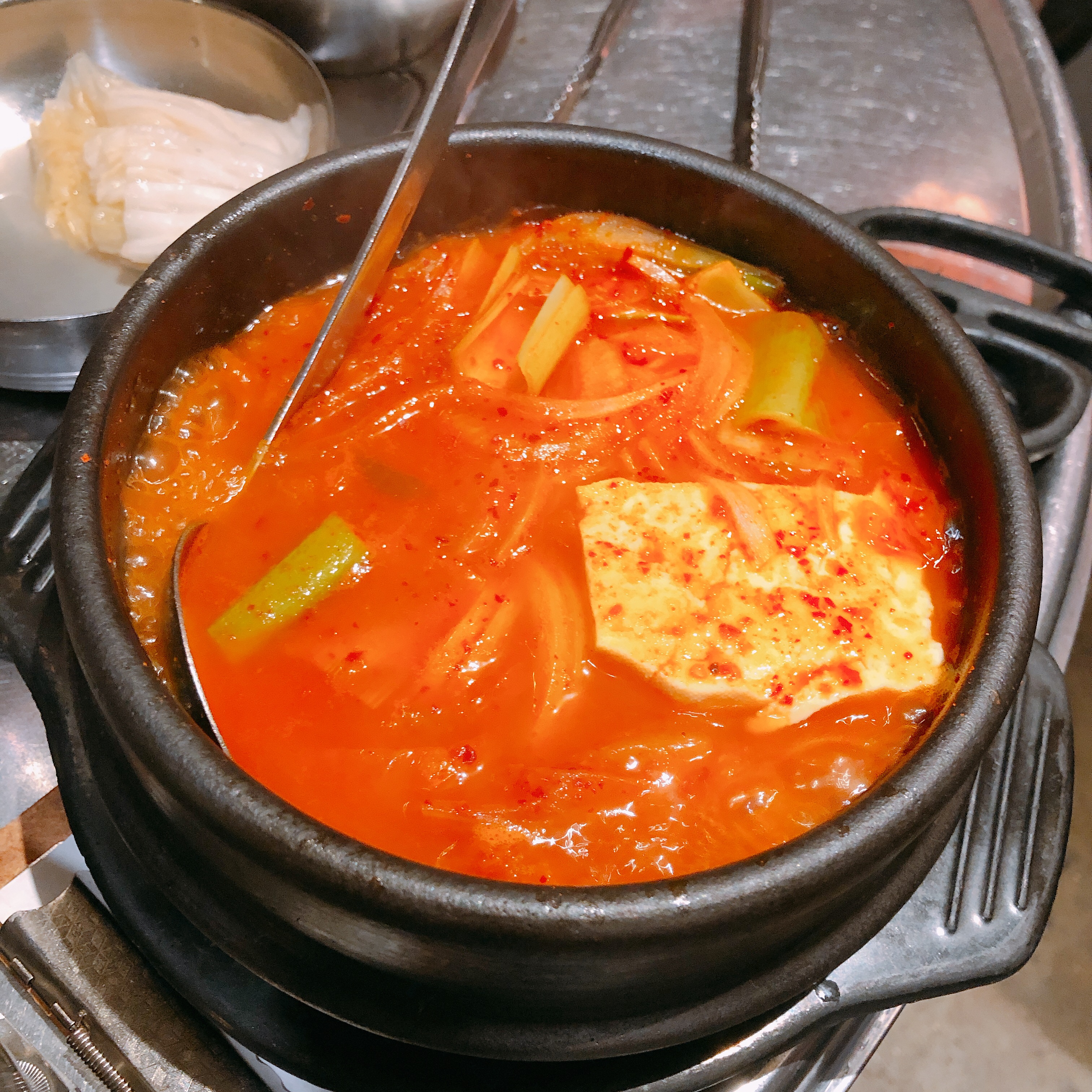 這時胃已經再次暖好,超適合追加熱度,灌入一口又一口酸酸辣辣的泡菜湯,再挖一口豆腐,馬西搜呦 (韓文:好吃死了)。德治之道,不過如此。