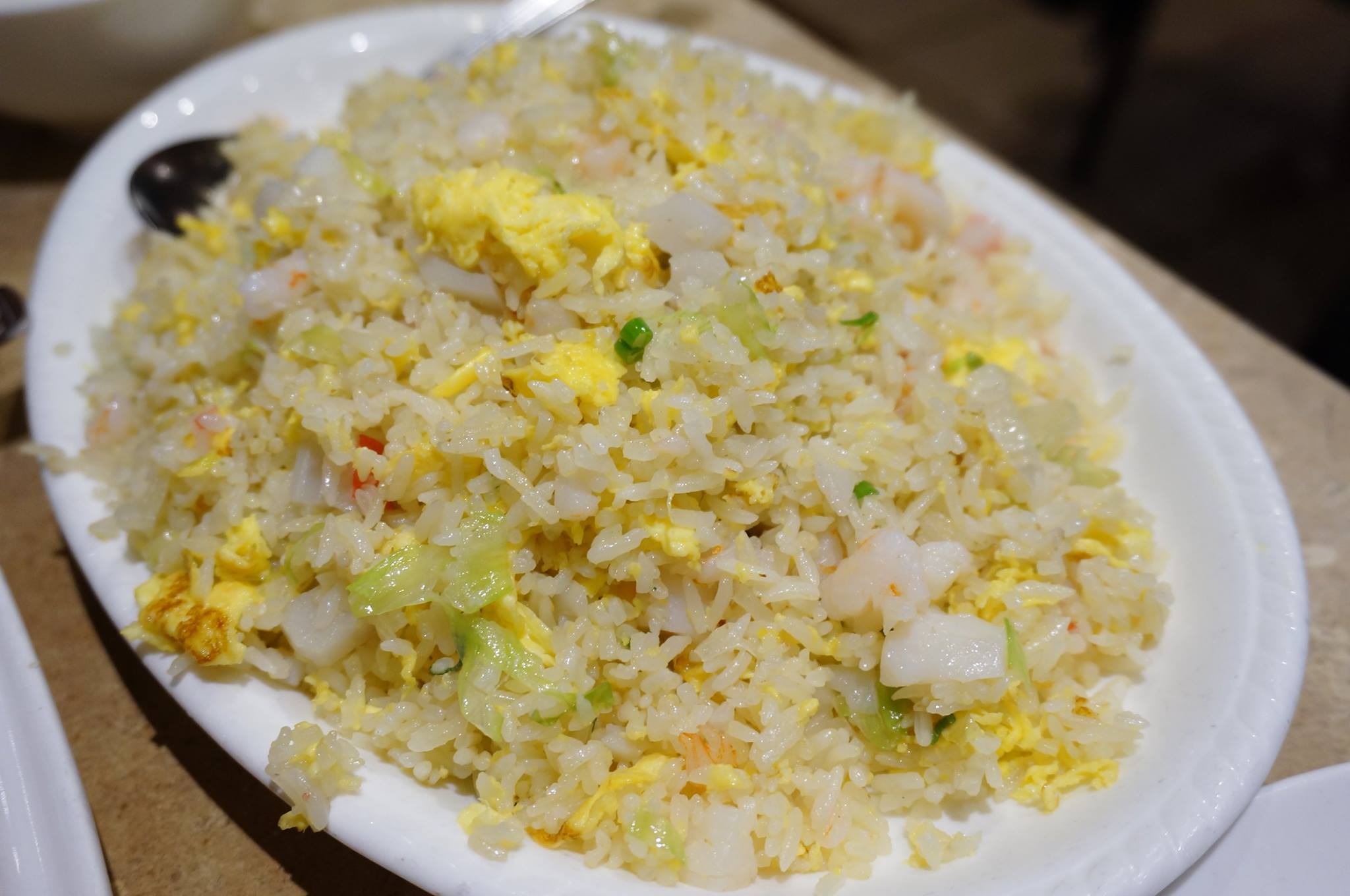 半獸人夫君點的海鮮炒飯(理由很無聊,因為炒海鮮竟然才$12,比網友推薦的金雙蛋炒飯$15還便宜,所以當然吃有海鮮的),粒粒分明乾爽,重點是,是用正常白米炒的(有些學校裡的便宜中菜餐廳會用便宜的泰國米做炒飯,弄成四不像),真的讓人感受到嶺南小館廚師的用心,不會因為是炒飯就亂做。