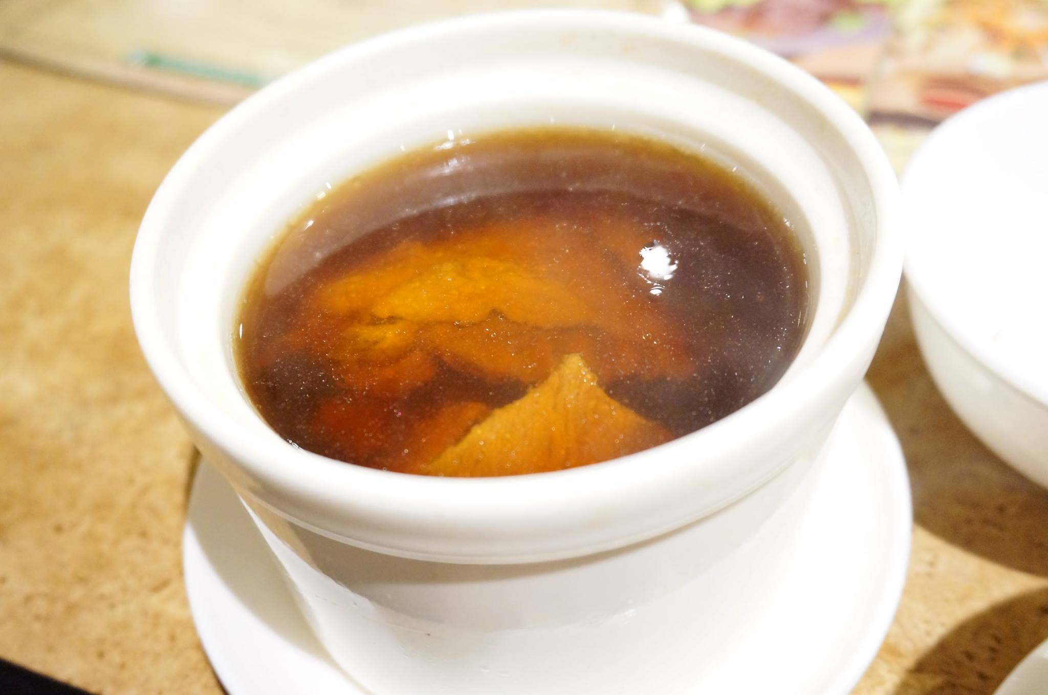 當天的每日例湯非常有誠意,是用慢火去煨燉的紅棗藥膳老雞湯。清淡又把整隻雞的精華都濃縮在這一小盅裡,挑起食慾,讓人更期待下一道菜。
