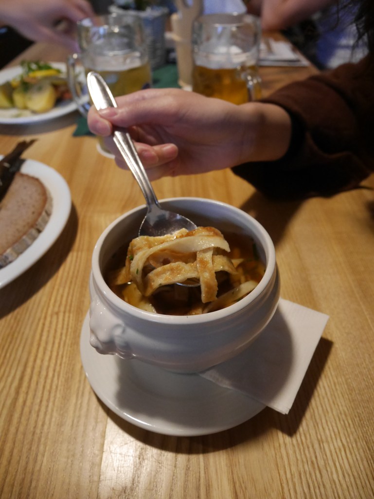最後,因為實在是太好奇,被網友們嫌棄的維也納香腸麵條湯(Großer Nudelsuppentopf mit Wiener Würste)是怎麼回事,所以,勇敢地點了!