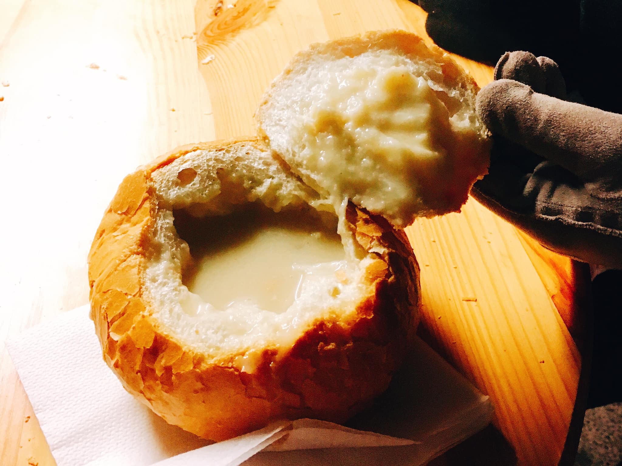 發現,哇嗚,原來維也納也時興濃湯麵包碗啊(讓人超懷念舊金山的酸麵包濃湯)!
