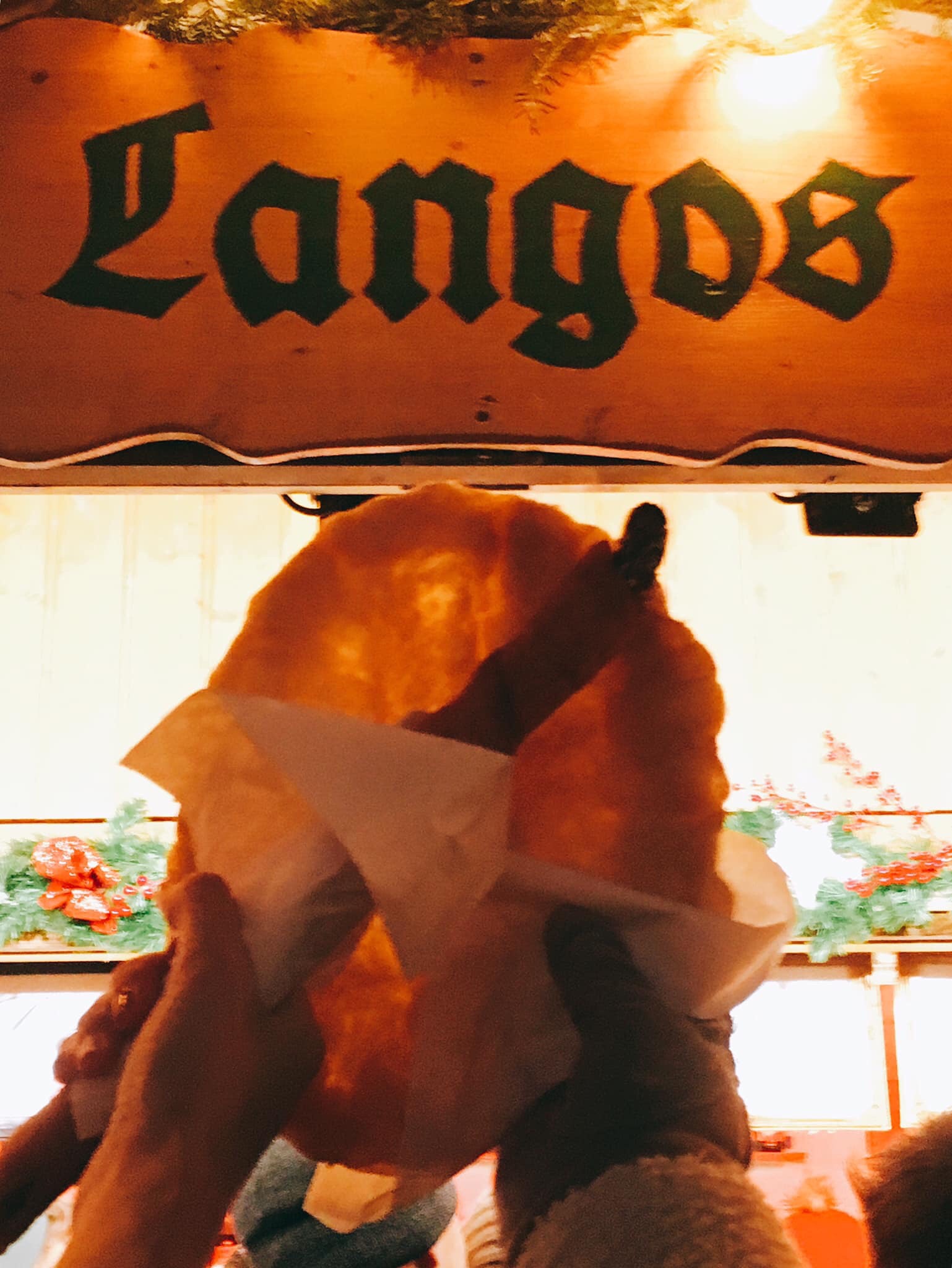 但如同畫面所見,維也納聖誕夜市的Langos就是團虛弱的炸面團(一般來說,Langos上面應該要加配料一起吃才對,不知道為什麼這攤的Langos如此空虛)➡️ 但其實後來去匈牙利聖誕市集吃,真心覺得即使是發源地,Langos真的不是什麼美味的東西啊!