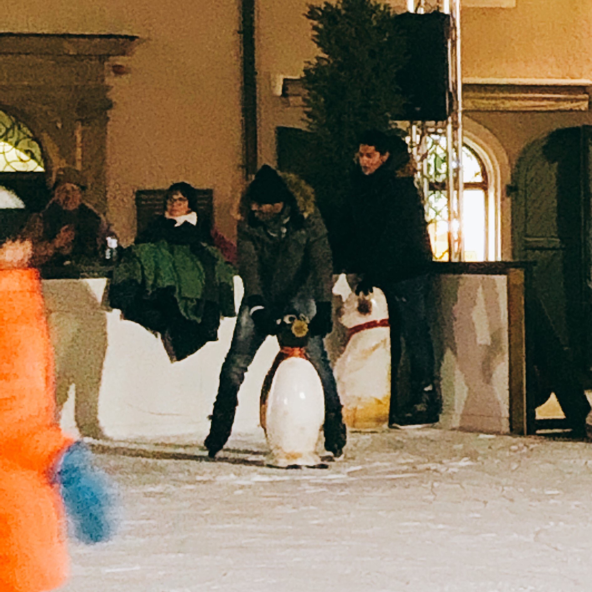 看到同樣來自非雪地國家的遊客,恥力全開地操作著冰上學步機。看這幾個大男孩搖搖擺擺用冰刀鏟冰(這似乎是初學者的宿命),但一直無法成功轉彎…等他們終於成功繞場一圈,鏟出來的碎冰,應該都可以做成好幾碗刨冰了吧 ➡️ 看來,無論是什麼運動,一定都要趁天不怕地不怕的屁孩時期趕快學一學,溜冰這種事情,不是摔個幾天,就可以駕馭了嗎😤