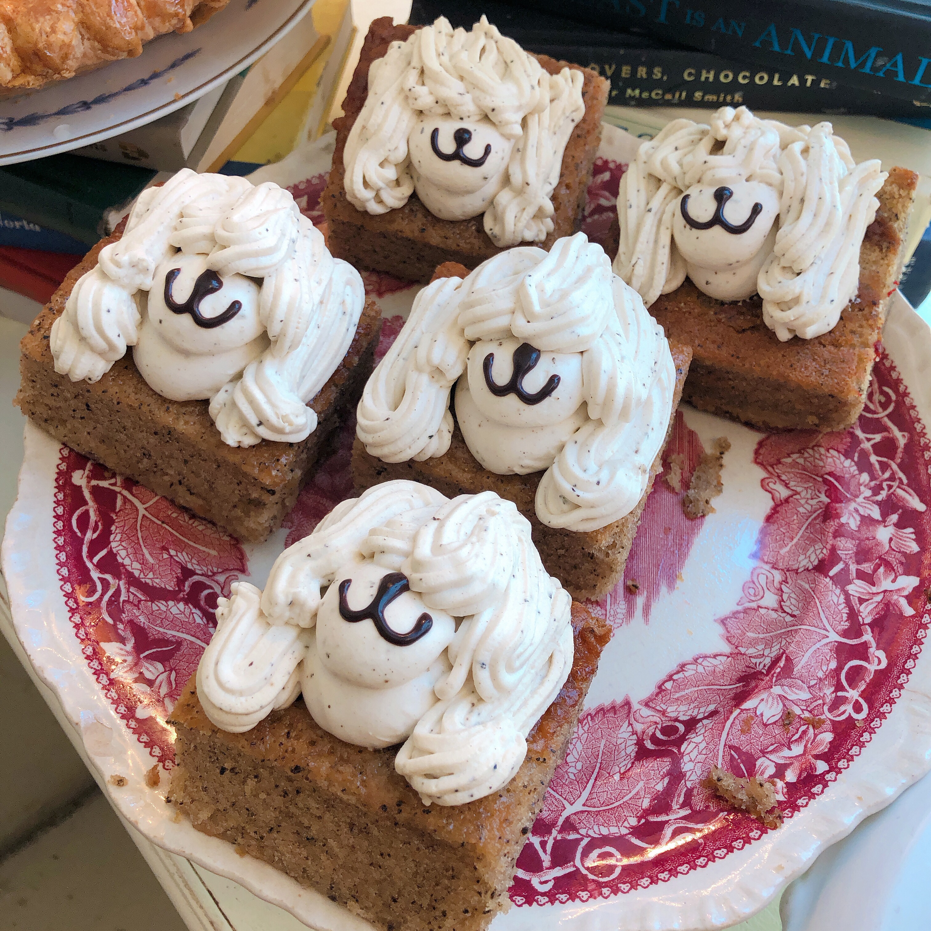 還有這個一看就知道是在賣擠花奶油的磅蛋糕😂😂😂 浮誇的捲毛狗🐩出現在樸實的磅蛋糕上,畫面真的好有衝擊力啊!