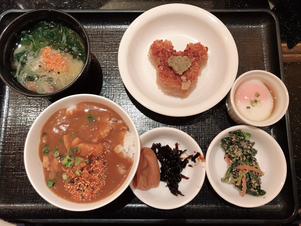 - 傳統日式菜色:味噌湯、茶泡飯、現煮拉麵、米奇烤飯糰、海苔、半熟蛋、各種漬物小菜