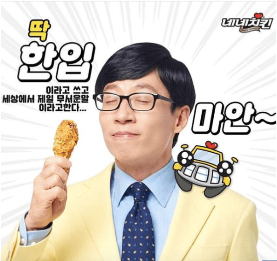 即使現在代言人已經不是劉在錫(人家現在開始經營trot劉三絲,都被中菜館挖走了,炸雞店應該付不起他的代言費了😭),但講到NENE還是會直覺想到國民MC劉大神啊!