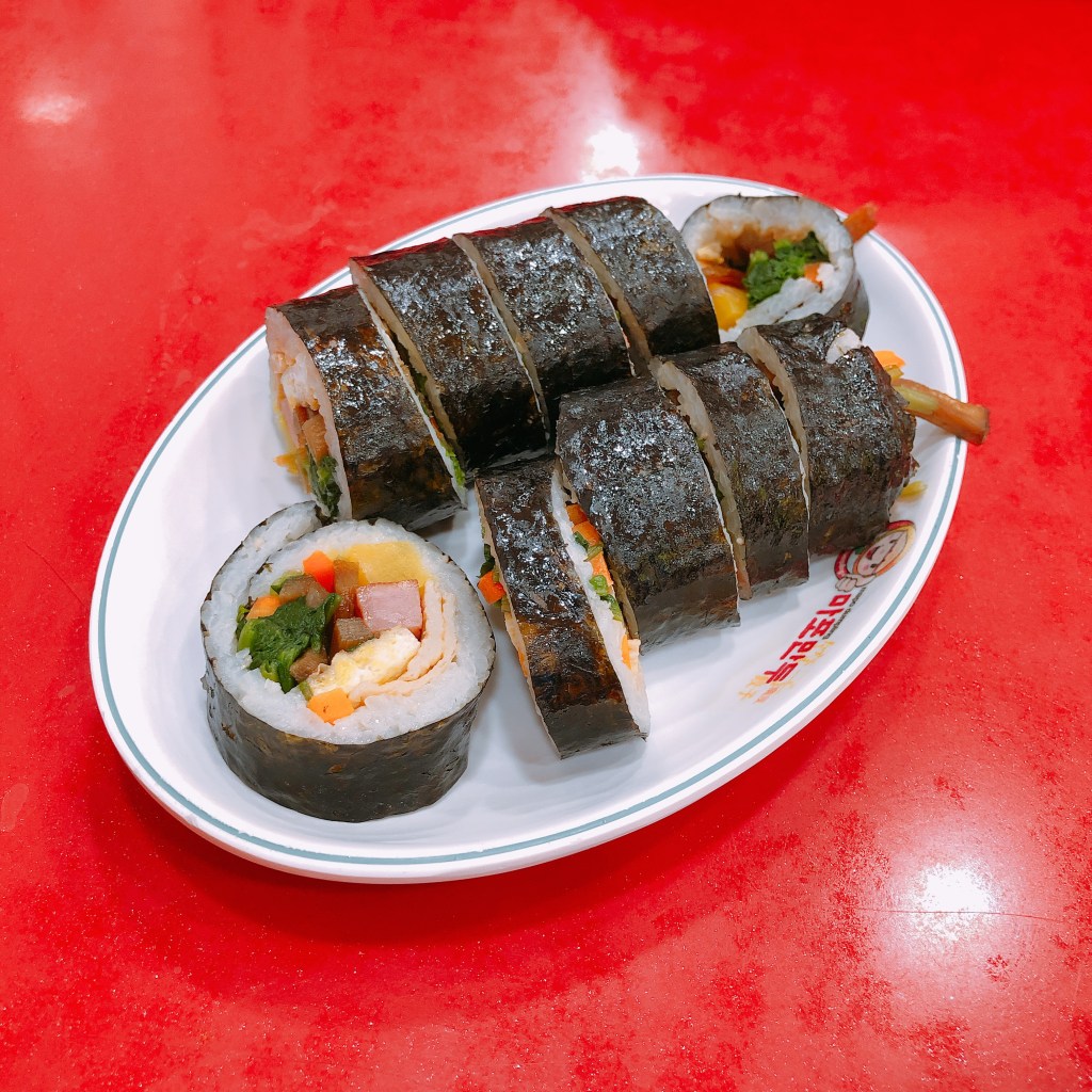 包著菠菜、火腿、煎蛋、魚板、醃蘿蔔的紫菜飯卷,雖然沒有廣藏市場內的麻藥飯卷好吃,但真的很適合在品嚐美味的排骨餃子後,吃一盤飯卷,用適量的澱粉填滿胃的空虛。