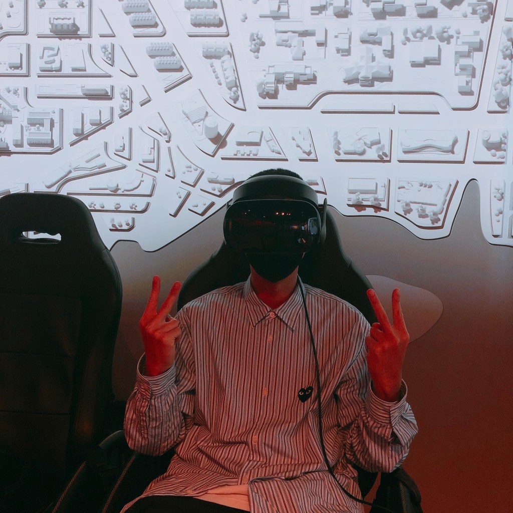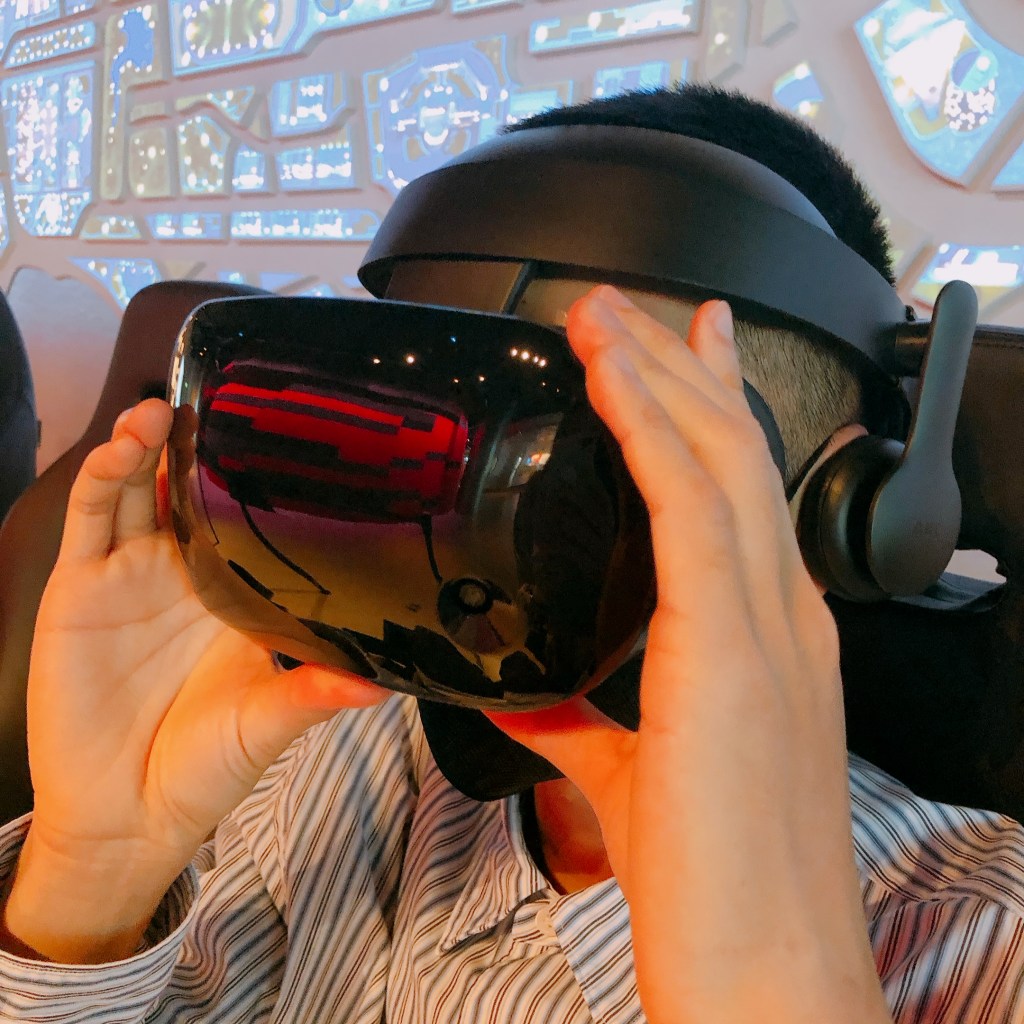 工作人員會發個人衛生用的眼罩,然後導引大家坐上椅墊、繫上安全帶,最後再協助戴上VR眼罩。