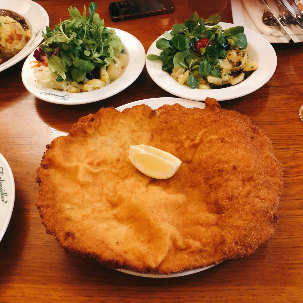 2018年米飛在維也納時,因為好奇到底有多難吃,所以一下飛機就奔往位於市區史蒂芬大教堂附近的百年名店Figlmüller。