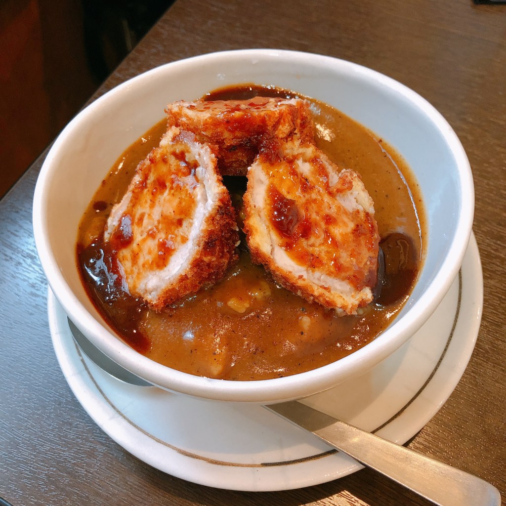 炊煮至粒粒分明的米飯,鋪上一整塊炸豬排,淋上香濃的咖喱醬,麵衣吸滿醬汁,一口享受炸物酥脆又濕潤的雙重口感,最棒的是,咖喱的辛香料隱隱刺激味蕾,一口口是白飯小偷!(來日本就暫時忘記減醣增肌減脂這件事吧)