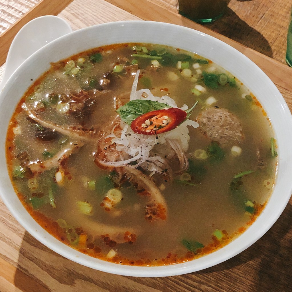 半獸人夫君毫不猶豫點了順化辣綜合牛粉,內容物非常複雜,有牛肉片、牛筋、牛肚還有撒尿牛肉丸(?)