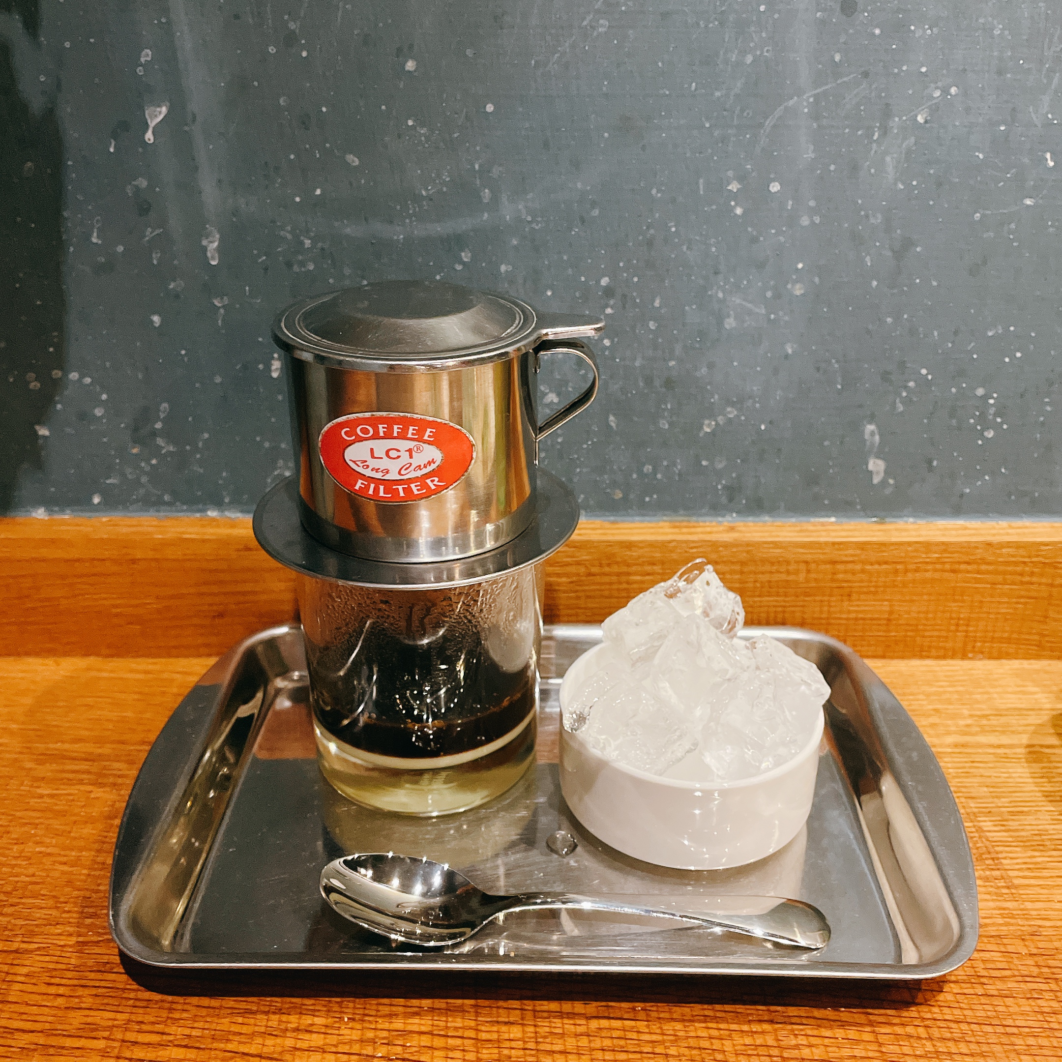 越南咖啡也是法國殖民的日常生活飲食遺跡。看著咖啡慢慢滴滴答答落入玻璃杯中,緩緩攪拌玻璃杯底的煉奶,最後加入冰塊,充滿等待美感的越式咖啡就完成了。