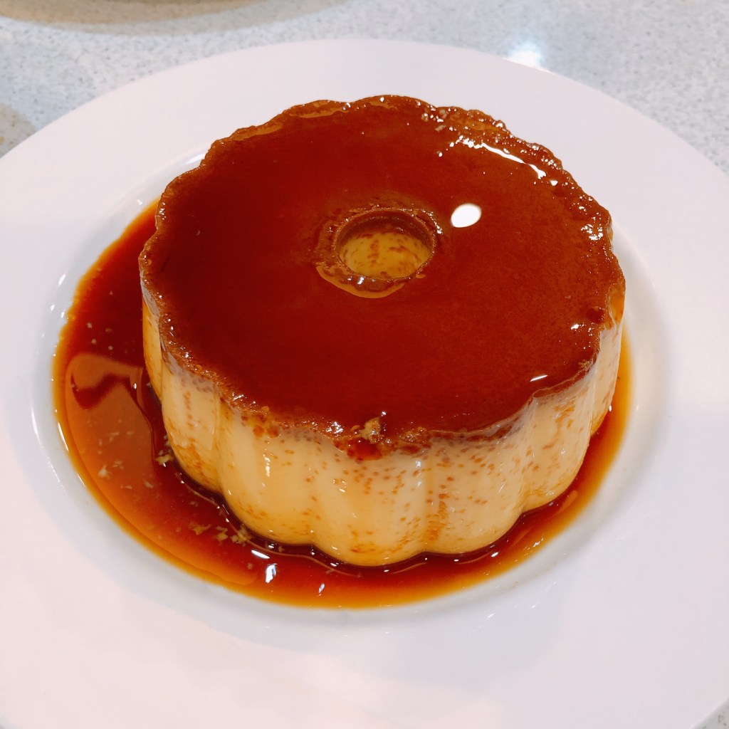口感介於豆腐與茶碗蒸的阿美飯店大布丁,澆上焦糖醬汁,散發甜膩誘人的香氣與光澤。