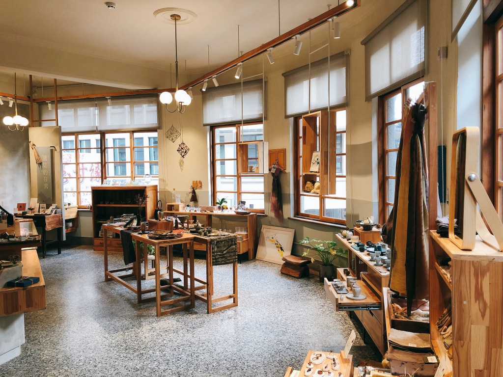 或者工藝櫥窗從建築物本身修復,保留老屋磨石子地板以及陡窄舊式樓梯結構;建築本身善用黃金三角店面特質,showcase展示著樸質的生活用品。