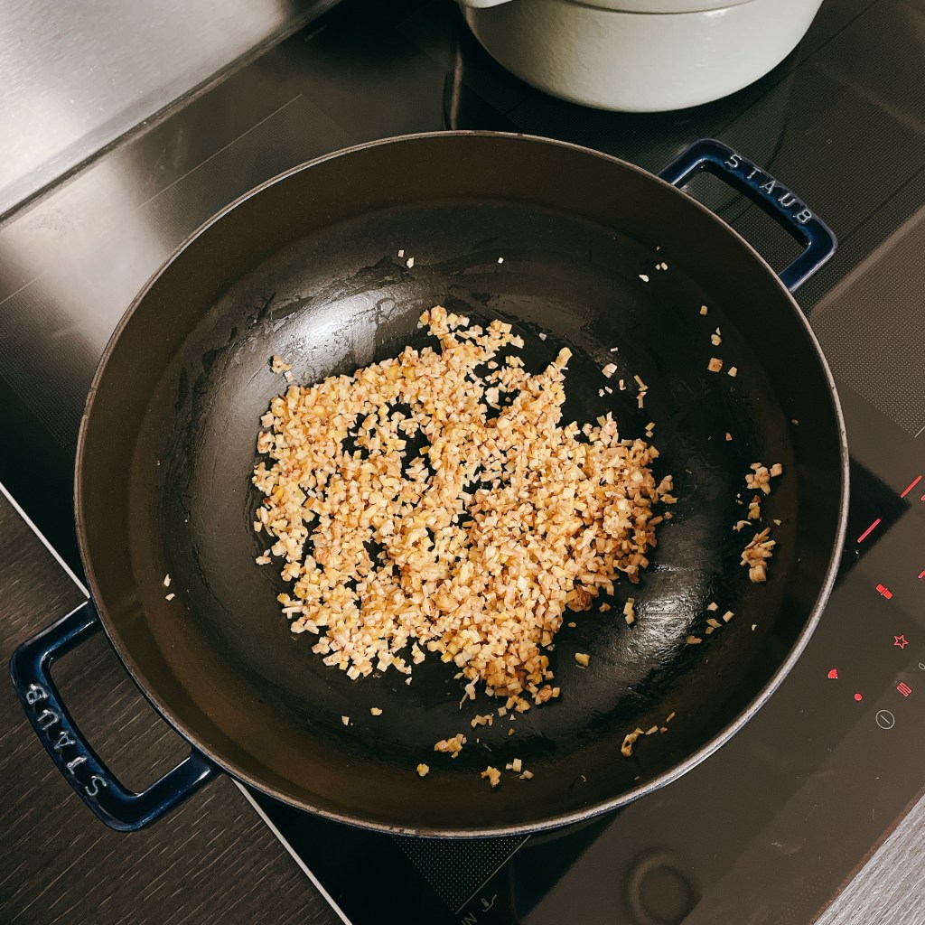 我用的是STAUB 28公分鑄鐵炒鍋,這道料理不一定要用鑄鐵鍋續熱效果、但一定要用夠深夠寬的中華炒鍋才比較好翻炒喔!