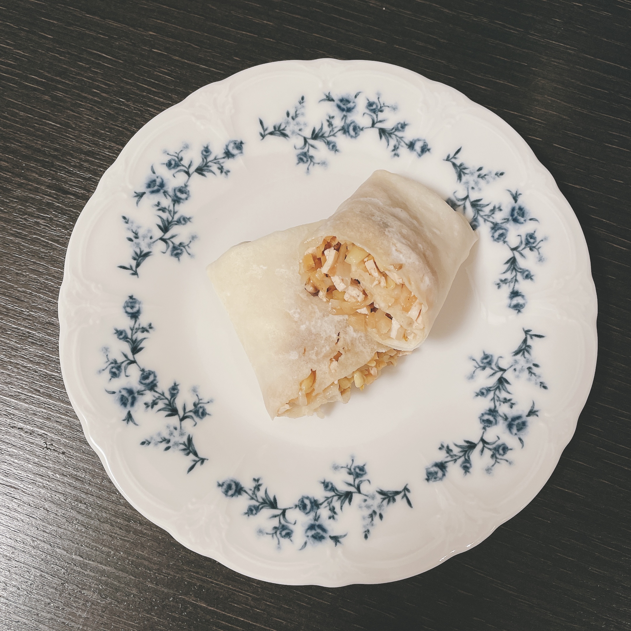 薄如雪紡的春捲餅皮,包滿滿炒到鹹香的綜合蔬菜、鮮香菇、以及豆乾,這就是我們家的【福州潤餅】、只有家族成員才懂的曼妙滋味,我覺得好吃又很健康,可以一口氣大量補充纖維素還有優質的豆類蛋白質,恰到好處的薑味趕走荷蘭春日微微的寒意,十分美好。
