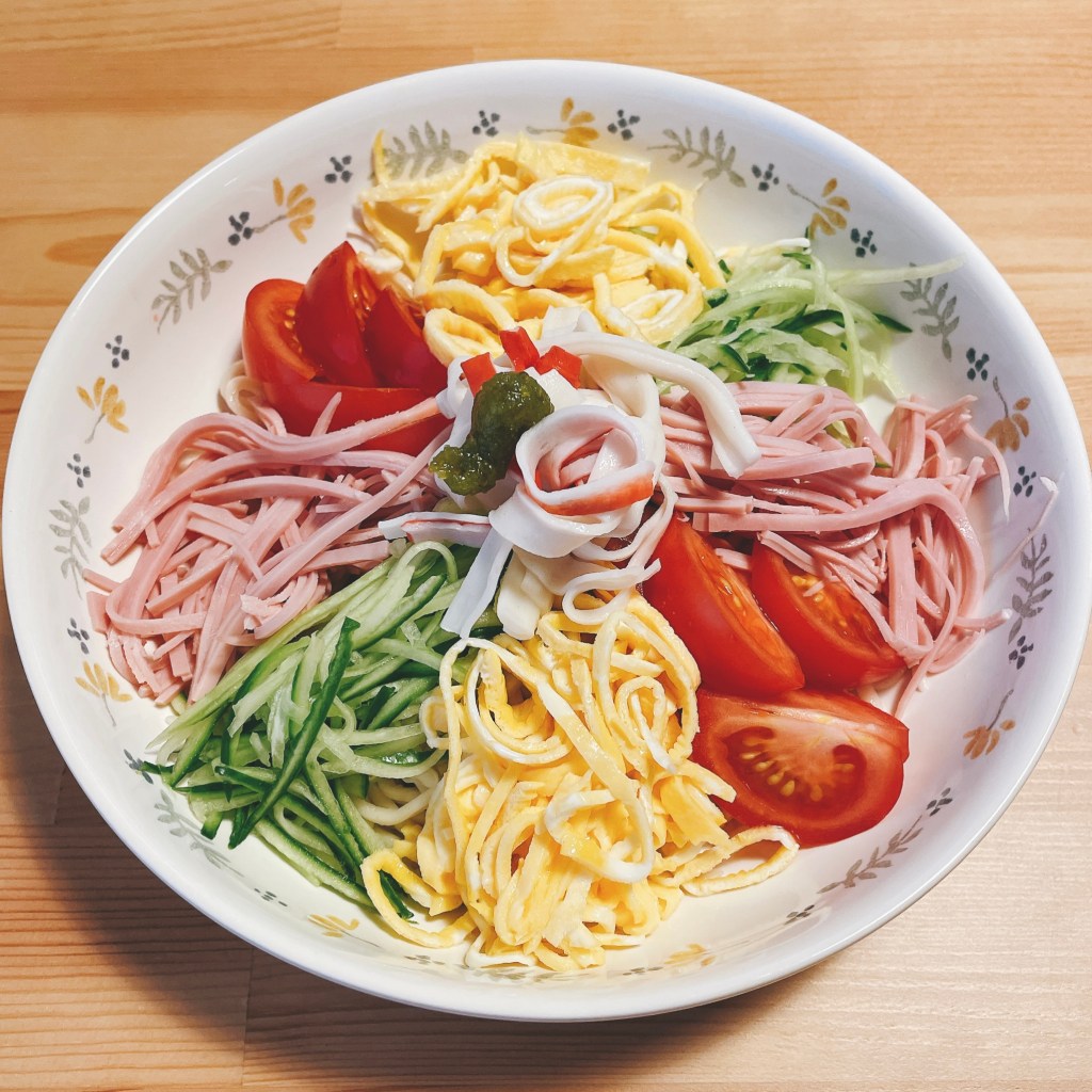 一般來說日本人會用做日式炒麵的那種「中華麵」煮熟後泡在冰水裡冰鎮;但在荷蘭超市那種現成麵條很貴而且口感差強人意,所以我們家都是用新鮮現做的麵條取代中華麵/鹼水油麵取代,風味不減甚至麵條更筋道、口感更佳!