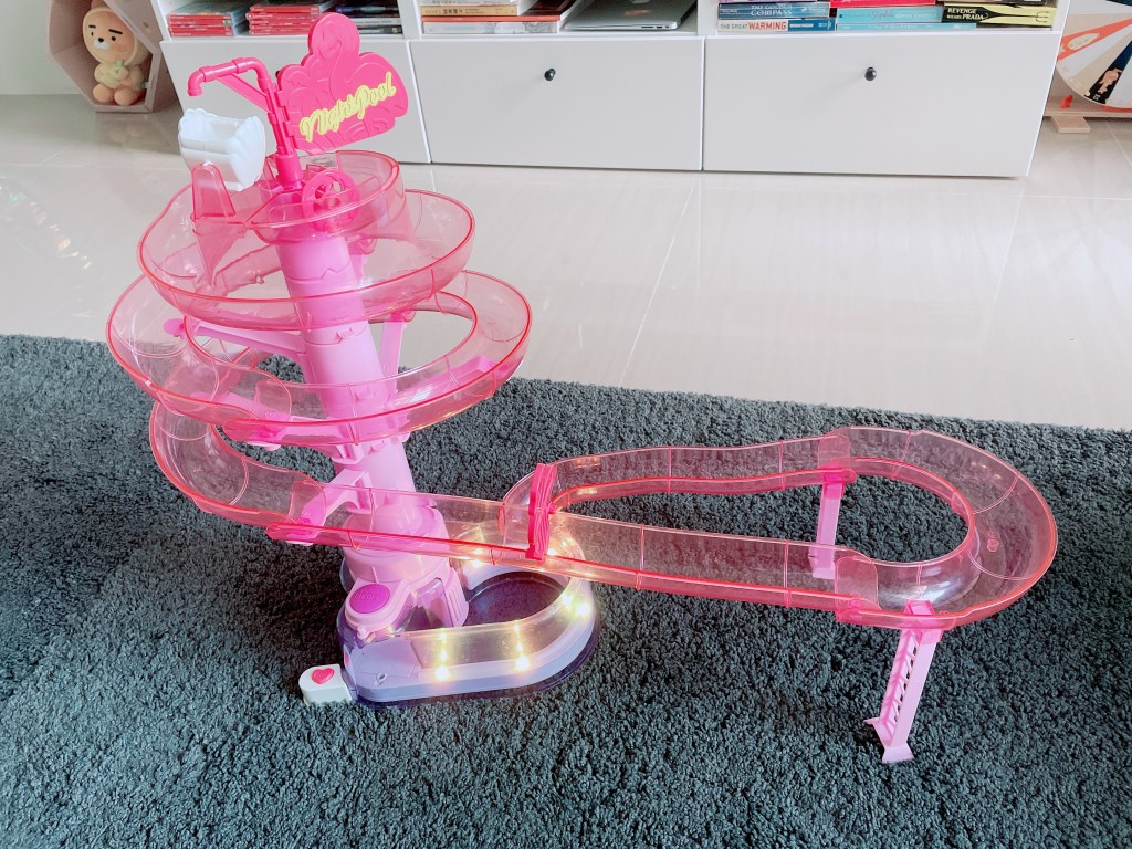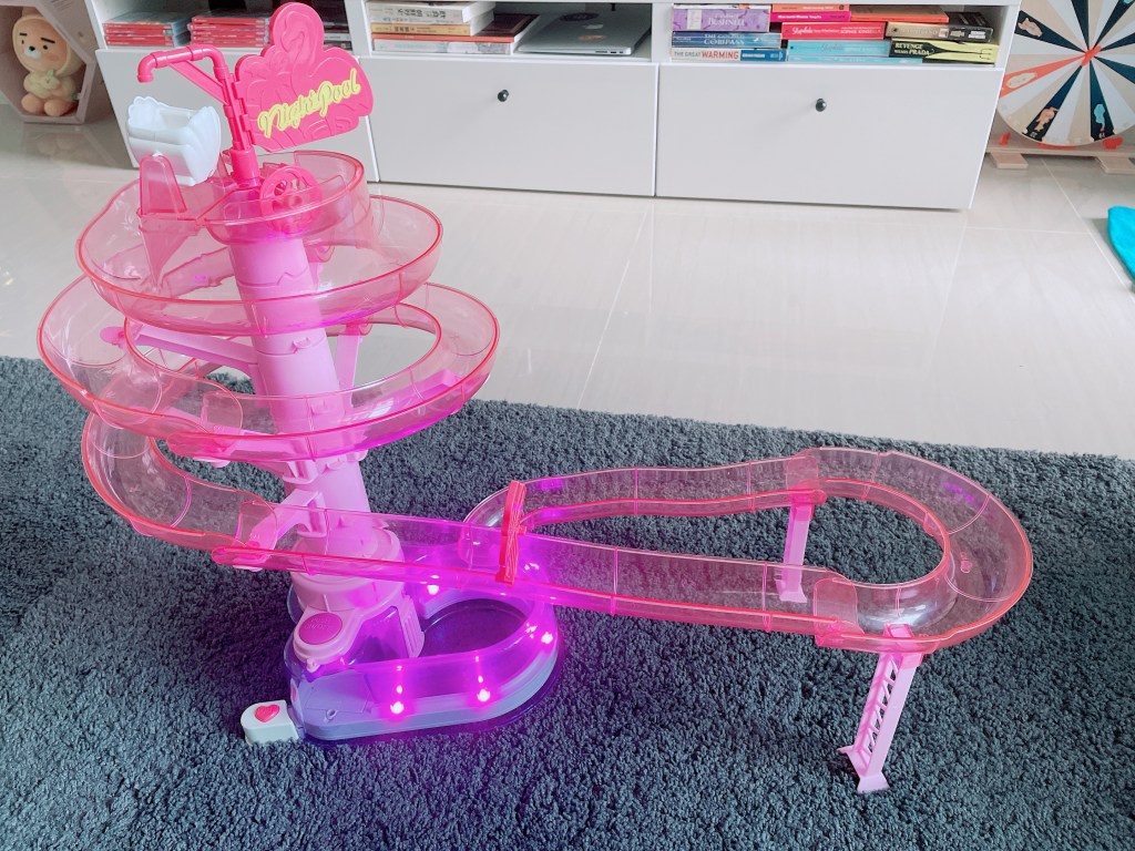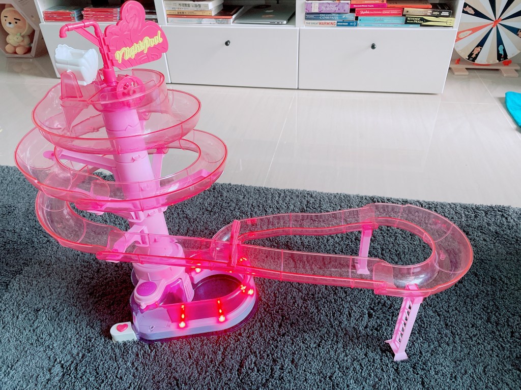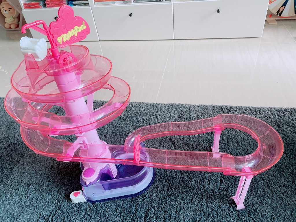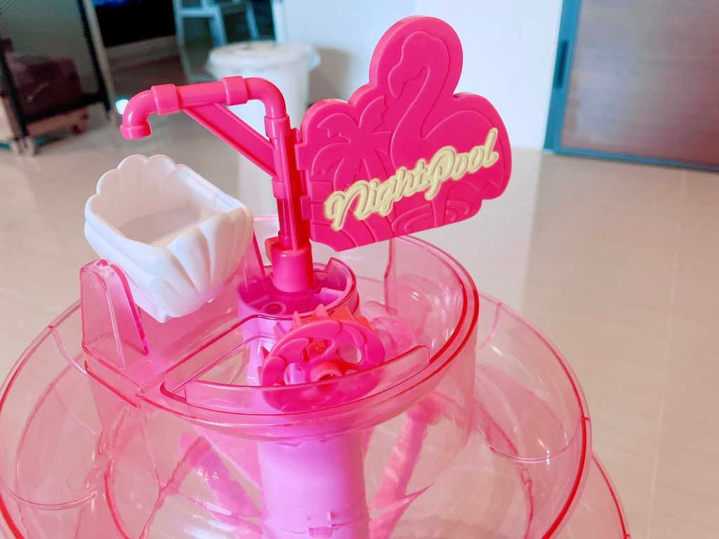 TAKARA TOMY這組夜店風Night Pool主題的流水涼麵機,無論實體或拍照都有濃重的「塑膠感」。