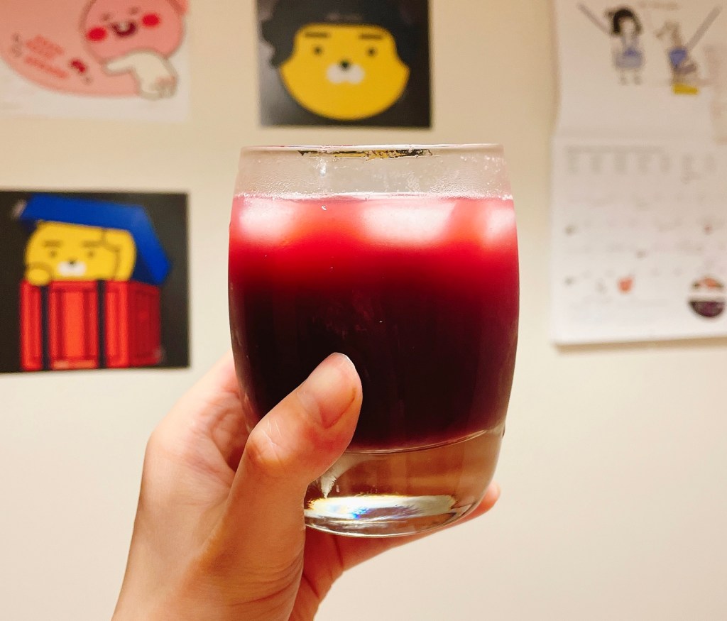 裝進米飛專屬的透明玻璃杯,清涼消暑的鮮榨果汁就完成囉!