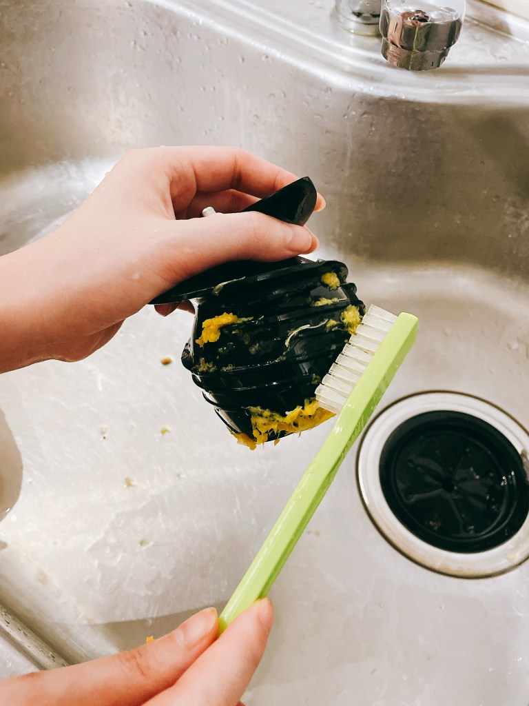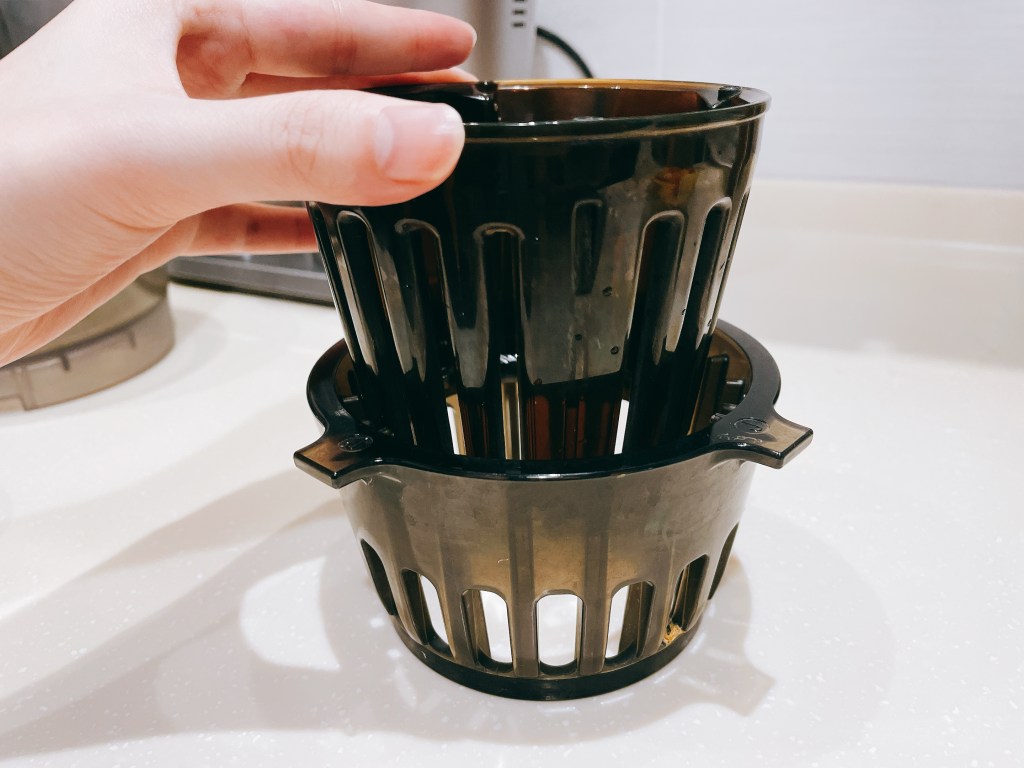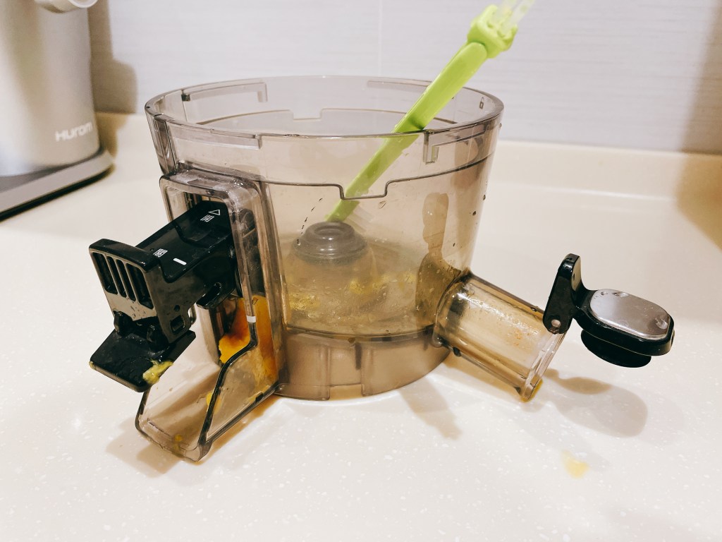 98%的果渣都直接排向外部,殘餘在機體上的果渣都能用附贈的小刷子輕鬆快速清洗,手腳俐落的煮婦如我,差卸加清洗的時間約莫2分鐘內,比處理水果的時間還短呢!