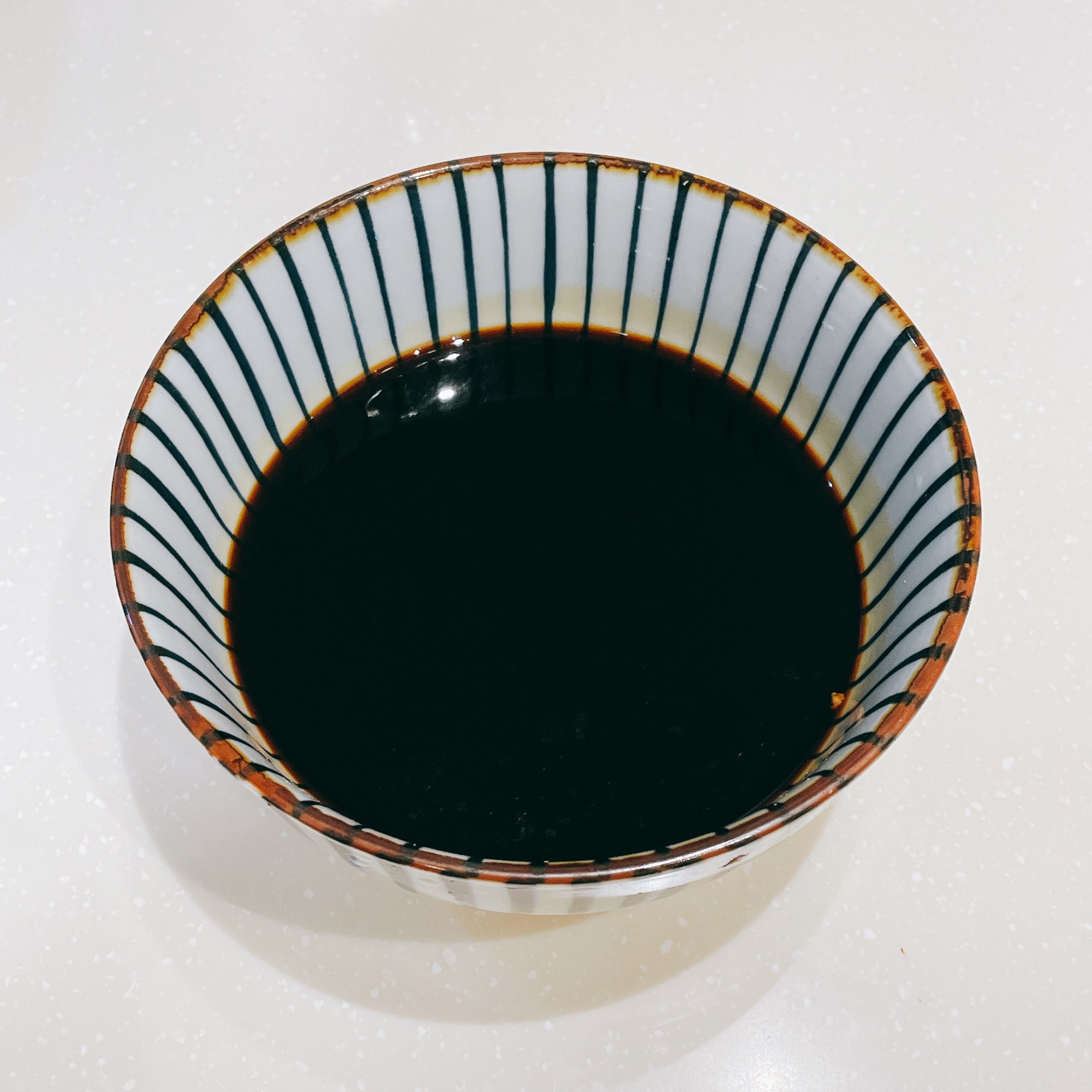醬油(150ml)水(500ml)紅辣椒(1根)切三段、蒜頭(10瓣)去皮、滷包(1包)月桂葉(2片)放入鑄鐵鍋中,煮到微滾後蓋鍋蓋小火煨煮15分鐘。