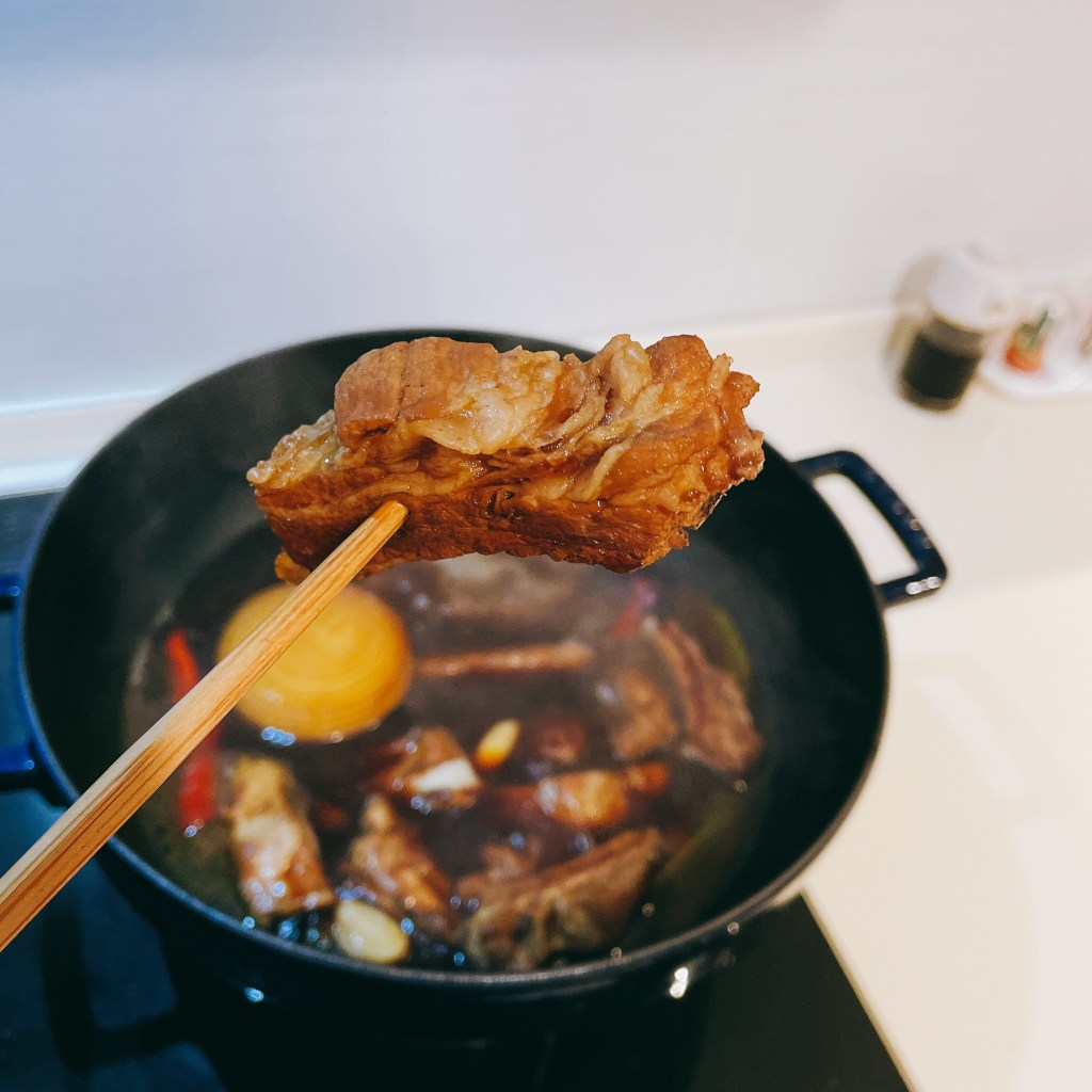 15分鐘後確認肋排是否完全軟爛(筷子可以輕鬆戳進肉裡),最後再蓋上鍋蓋用餘熱續悶10分鐘。