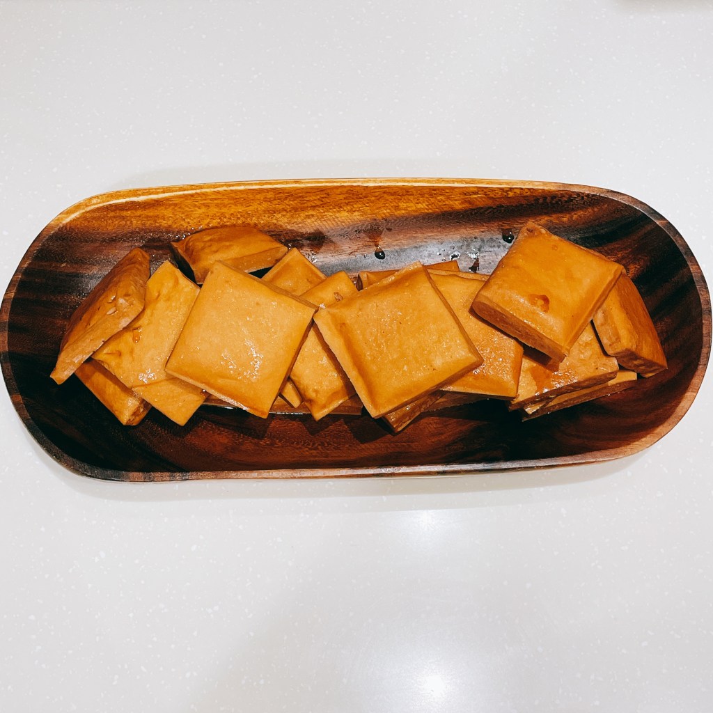 考量保存時會將滷汁和豆乾一併浸漬冷藏,因此一開始不要煮太入味,以免加熱時過鹹!