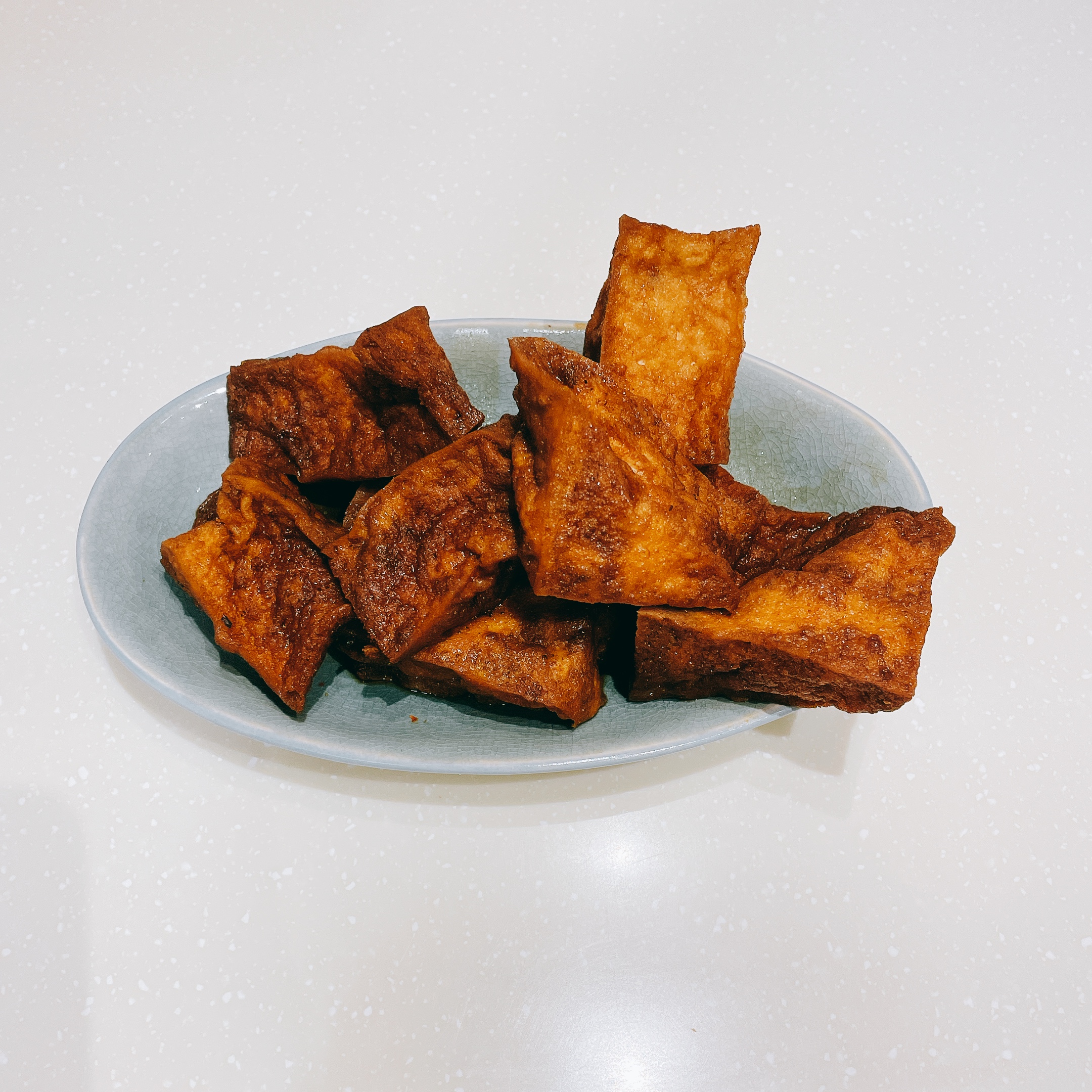 完成入味的油豆腐盛至盤中備用,接下來就能開始分裝和擺盤囉!