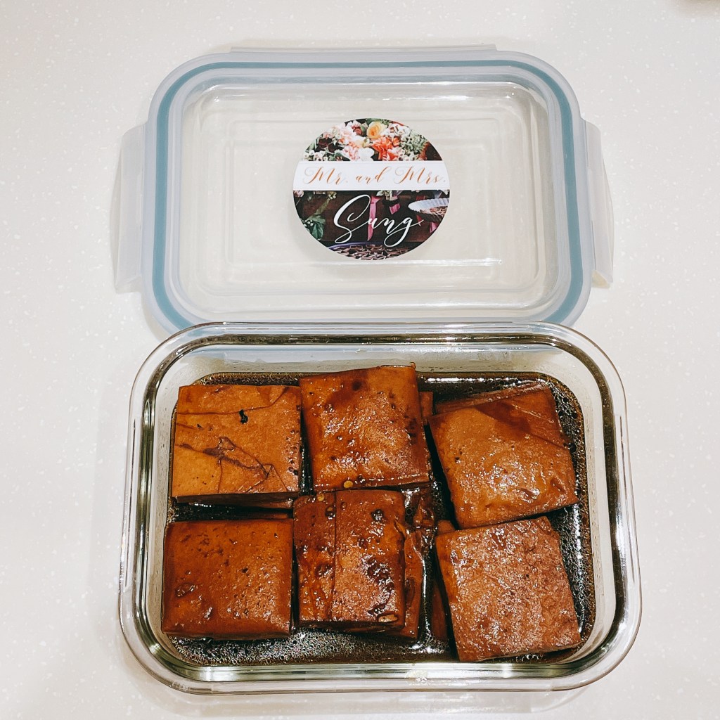 容易吸汁的食材(油豆腐、豬肋排)要與醬汁分開保存,以免回溫加熱時過鹹;豆乾則可浸泡在剩餘的滷汁中保存!