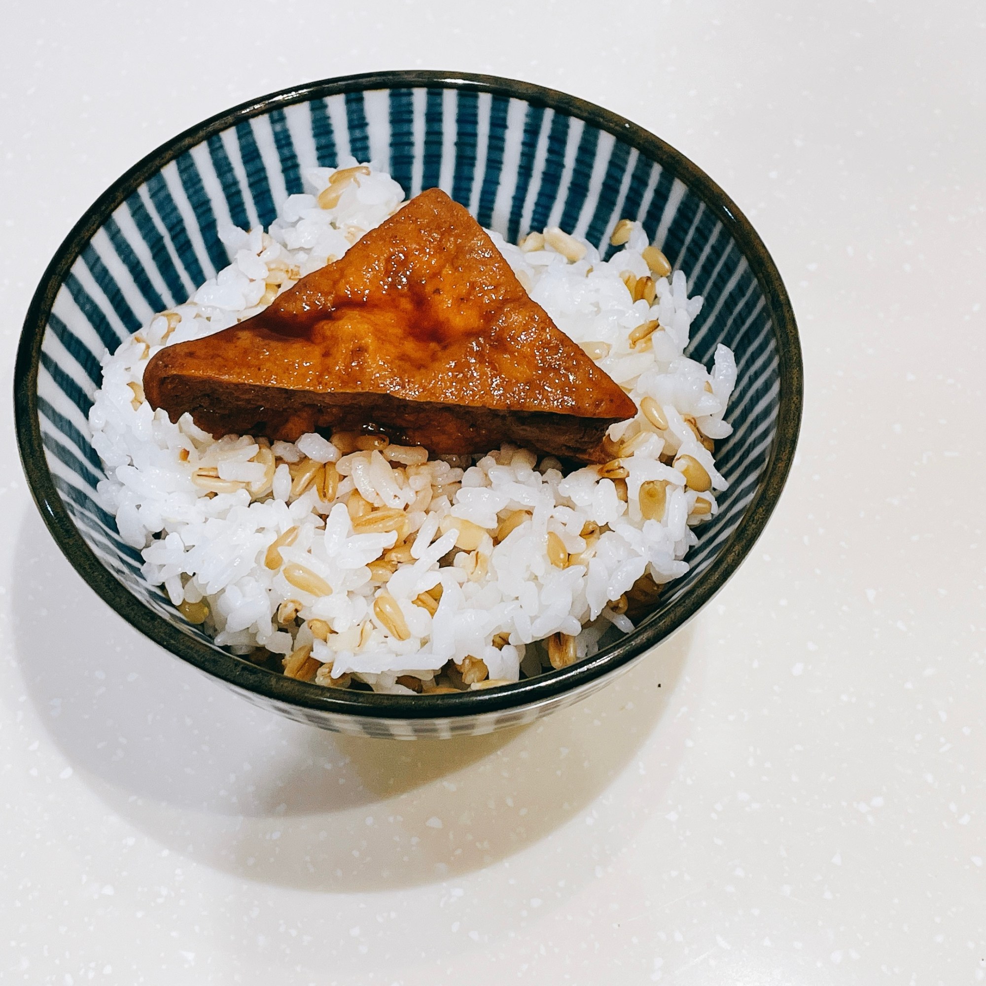 煮到Q彈的麥飯加上軟軟充滿滷汁的油豆腐讓人食慾大開,真的要煮比平常2倍的米飯才夠吃喔!
