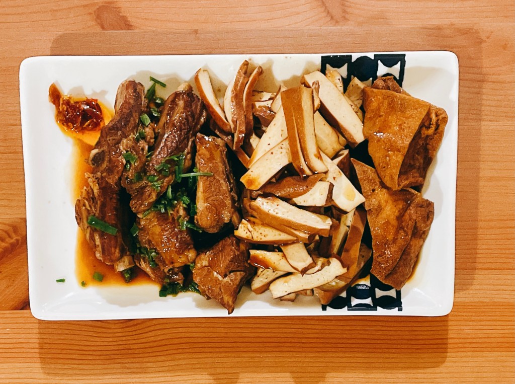 (由左而右)米飛滷水拼盤:豬肋排、豆乾、油豆腐