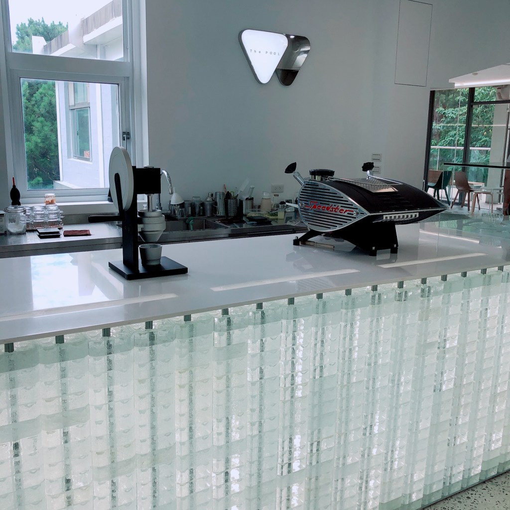 一塊塊彷彿冰磚堆砌而成的吧台,竟然也是回收玻璃再製的成品!