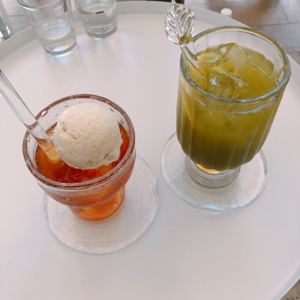 使用的食器都是來自春池回收玻璃吹製而成,除了選用在地食材(香山牧場鮮奶、福源花生醬),跨界聯名王長期合作的飲品內容物更有【台南蜷尾家】雪糕、【京盛宇】台灣茶。