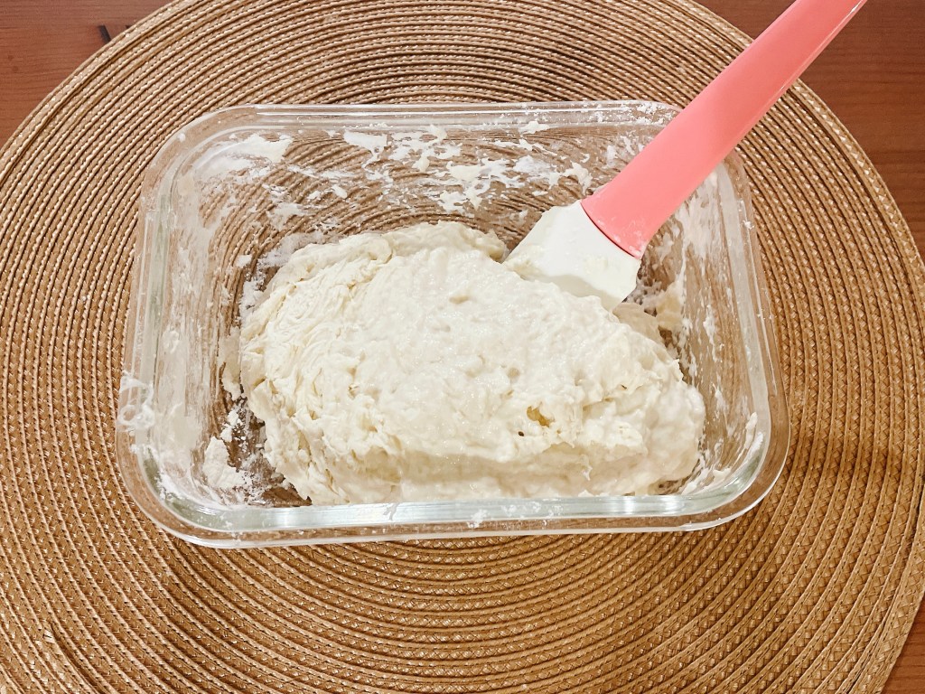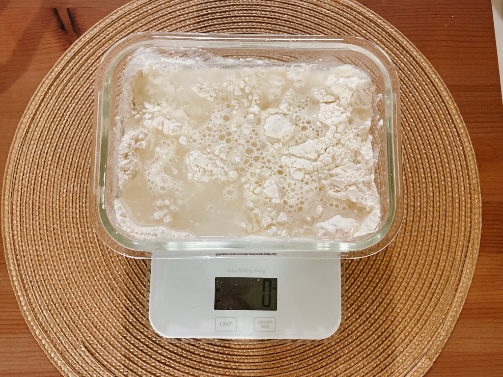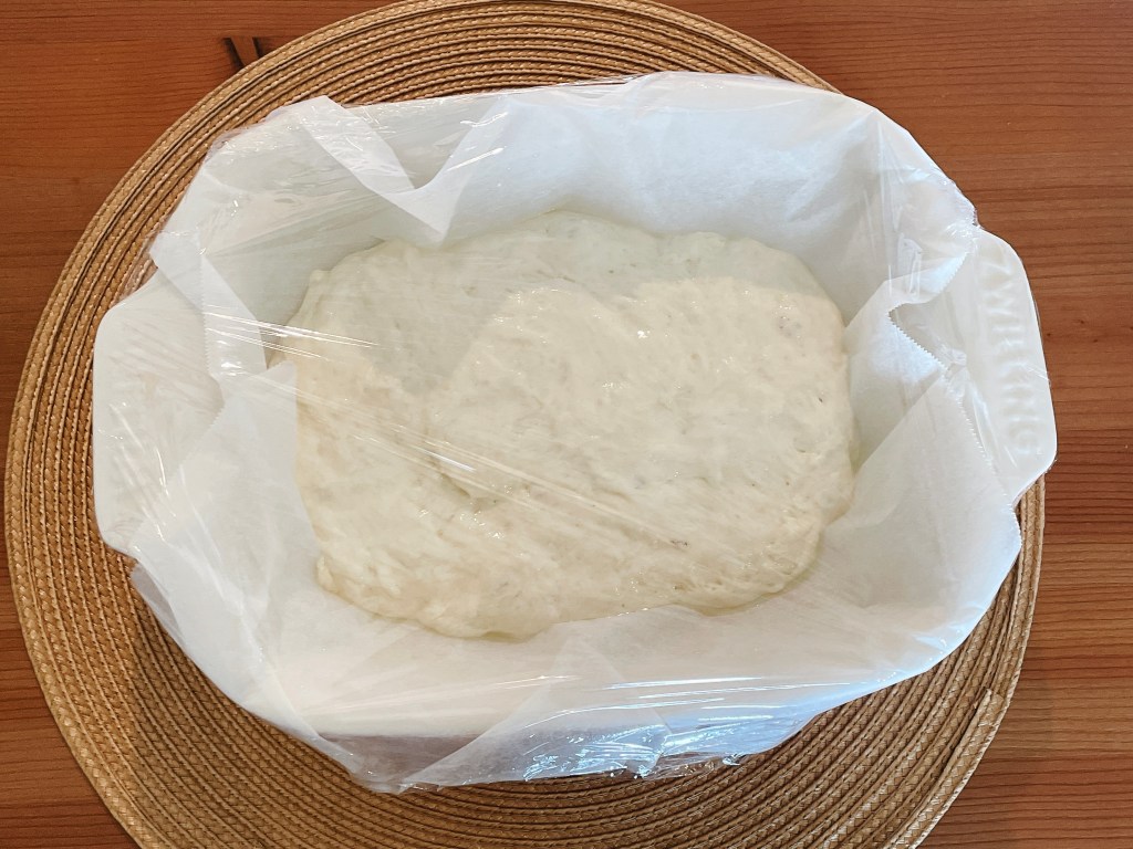 起床第一件事情不是嚕手機,而是走進廚房把麵團打開,用室溫喚醒麵團等待30分鐘,