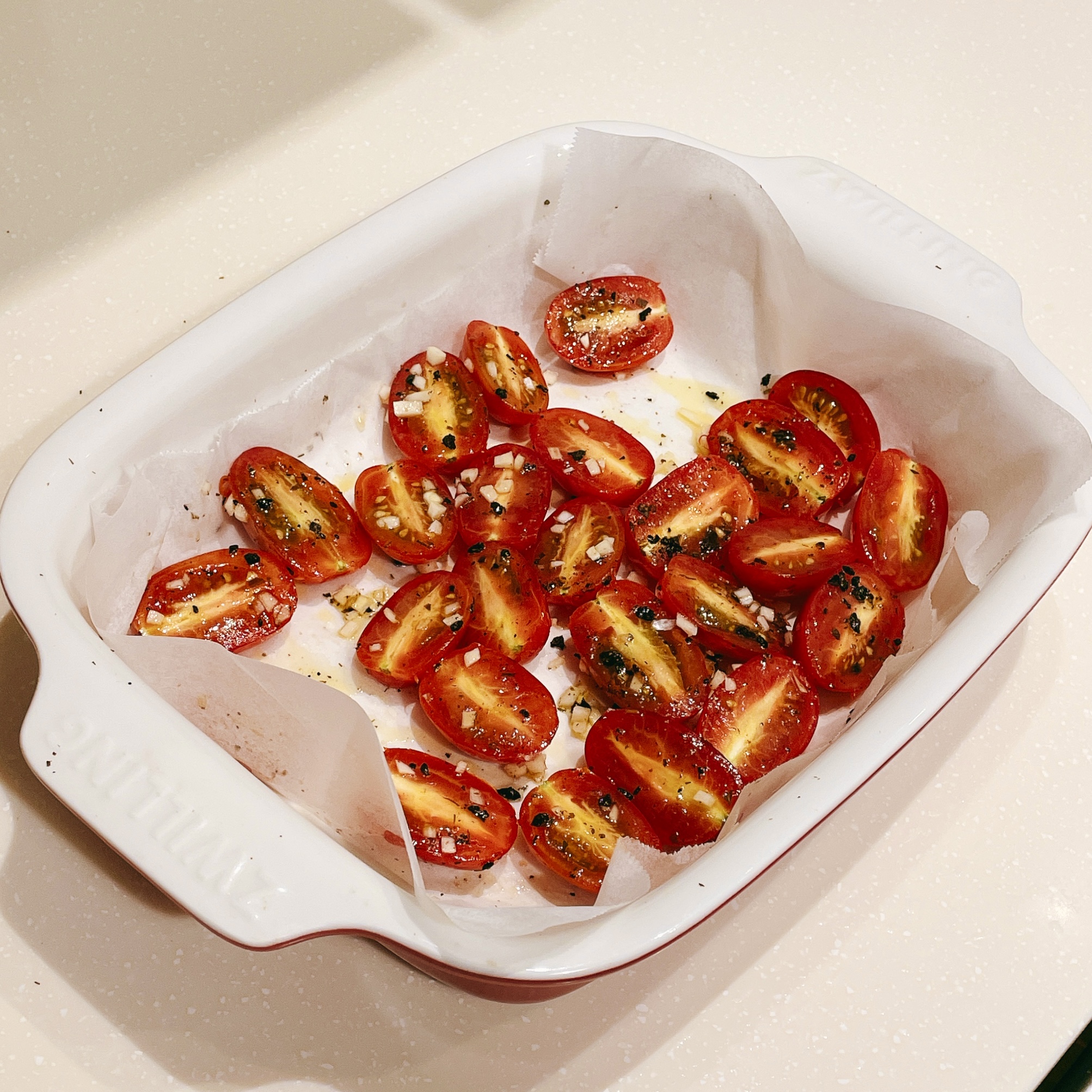 經過油封技術熟成的油漬番茄,番茄酸味不但更濃郁,還可以加入各種香草,烘烤的過程本身就是香料派對