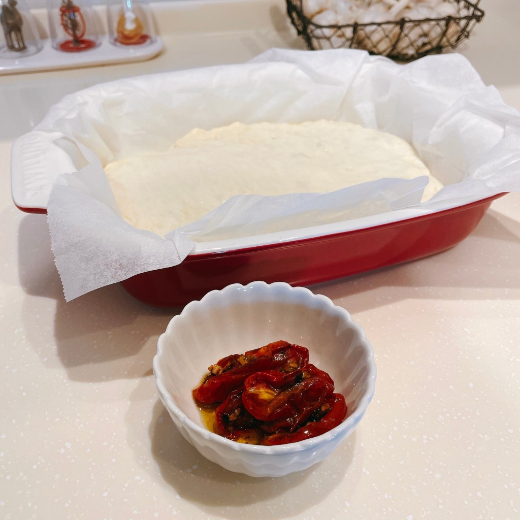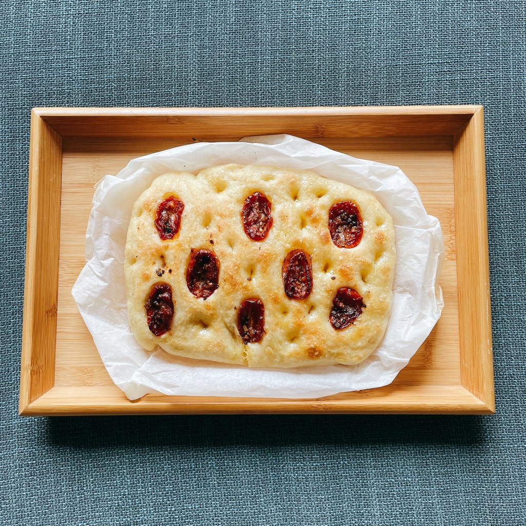 烘烤後浸漬在橄欖油中的番茄乾可作為佛卡夏配料,而油漬番茄的橄欖油本身吸收了各種香料的氣味,直接作為佛卡夏的底油真是最適合不過了!