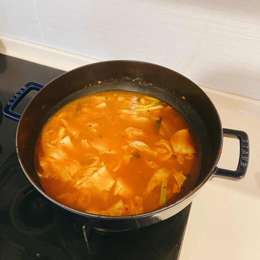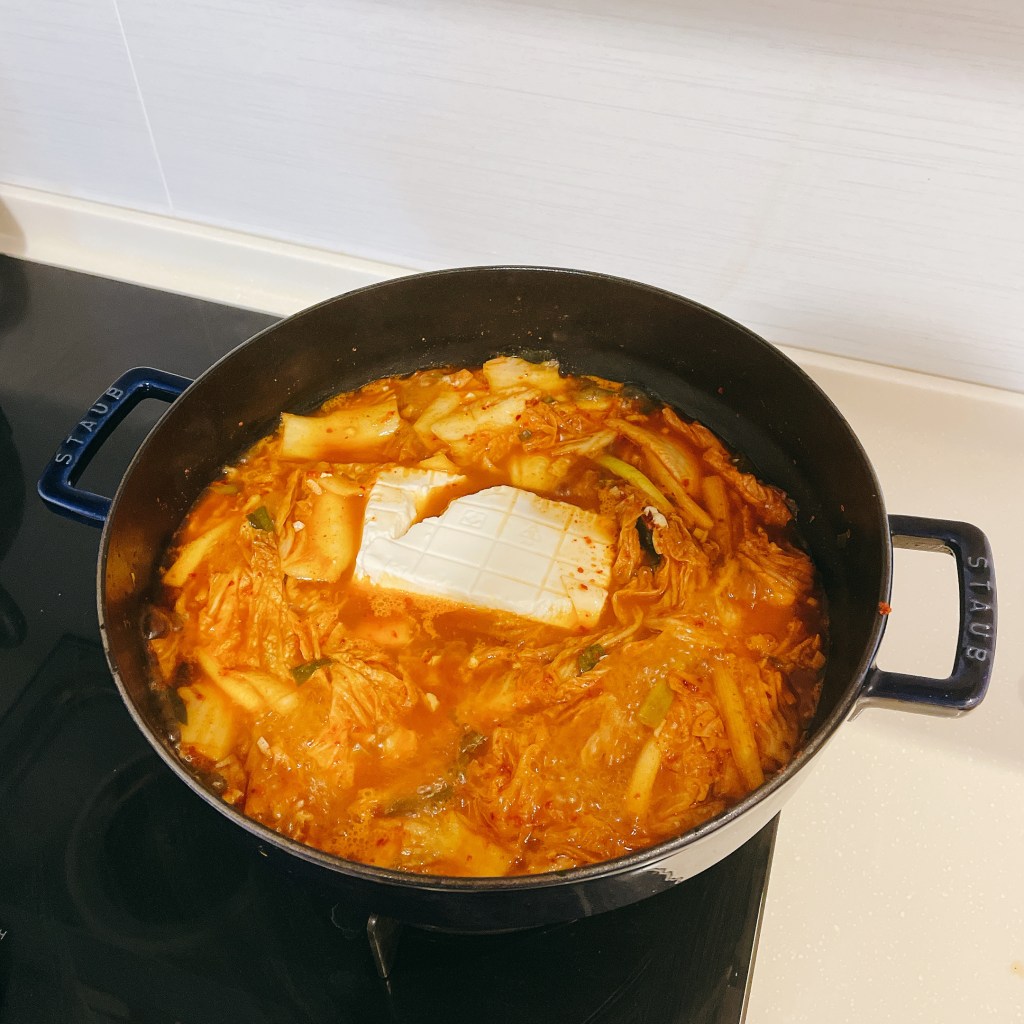 食材都處理完畢後,就能拿出鑄鐵鍋,變身PO美食店老奶奶開始燉煮泡菜鍋囉!