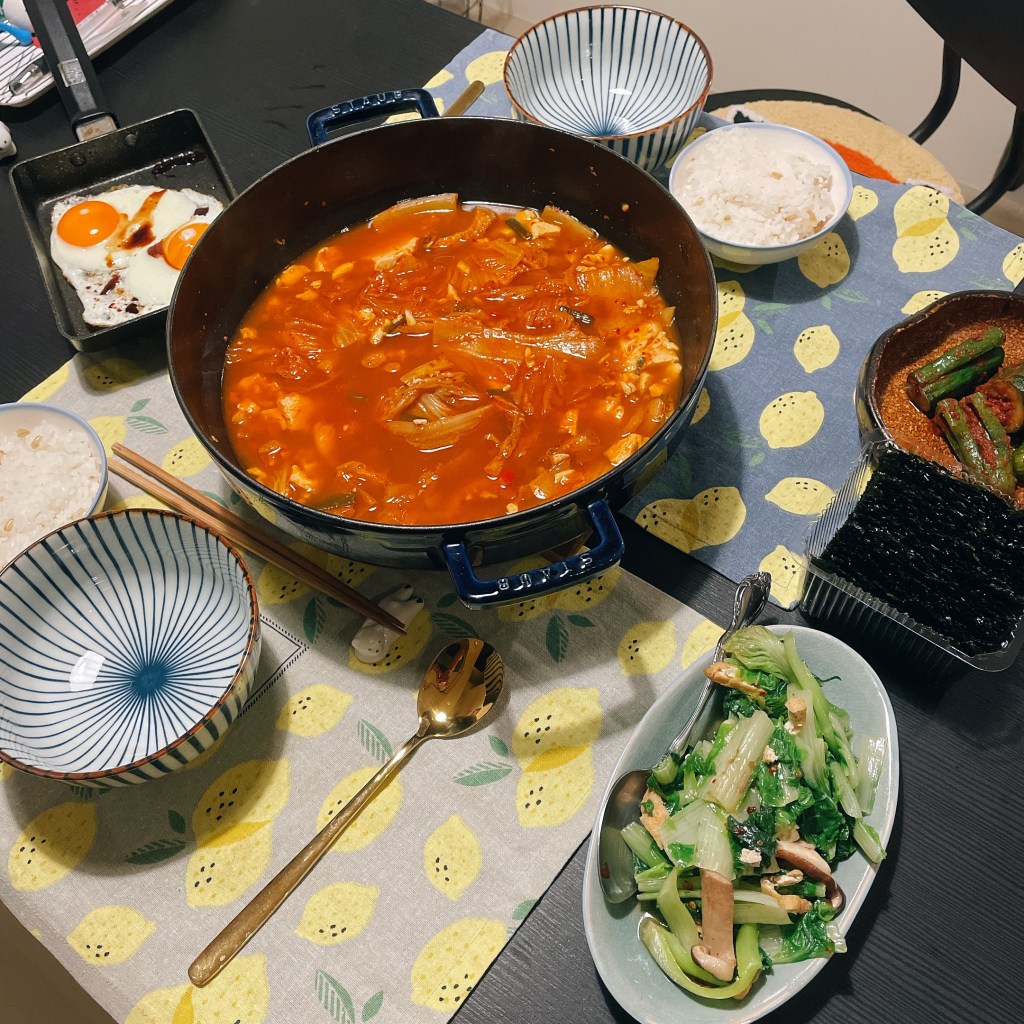 這集更讓人訝異的是,賢慧的PO還趁烤豬肉靜置待機時間,機智煮了豬肉泡菜豆腐湯作為晚餐湯品!相較繁複耗時的整塊烤豬,泡菜、火、辣椒粉三位一體的豬肉泡菜豆腐湯更吸引煮婦米飛眼球。