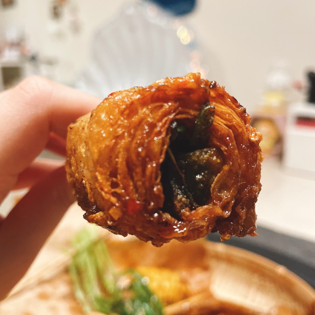 鎮店之寶,酥脆的豆皮包覆Q彈的皮蛋,更震驚的是,香菜竟然是成功的加分項!