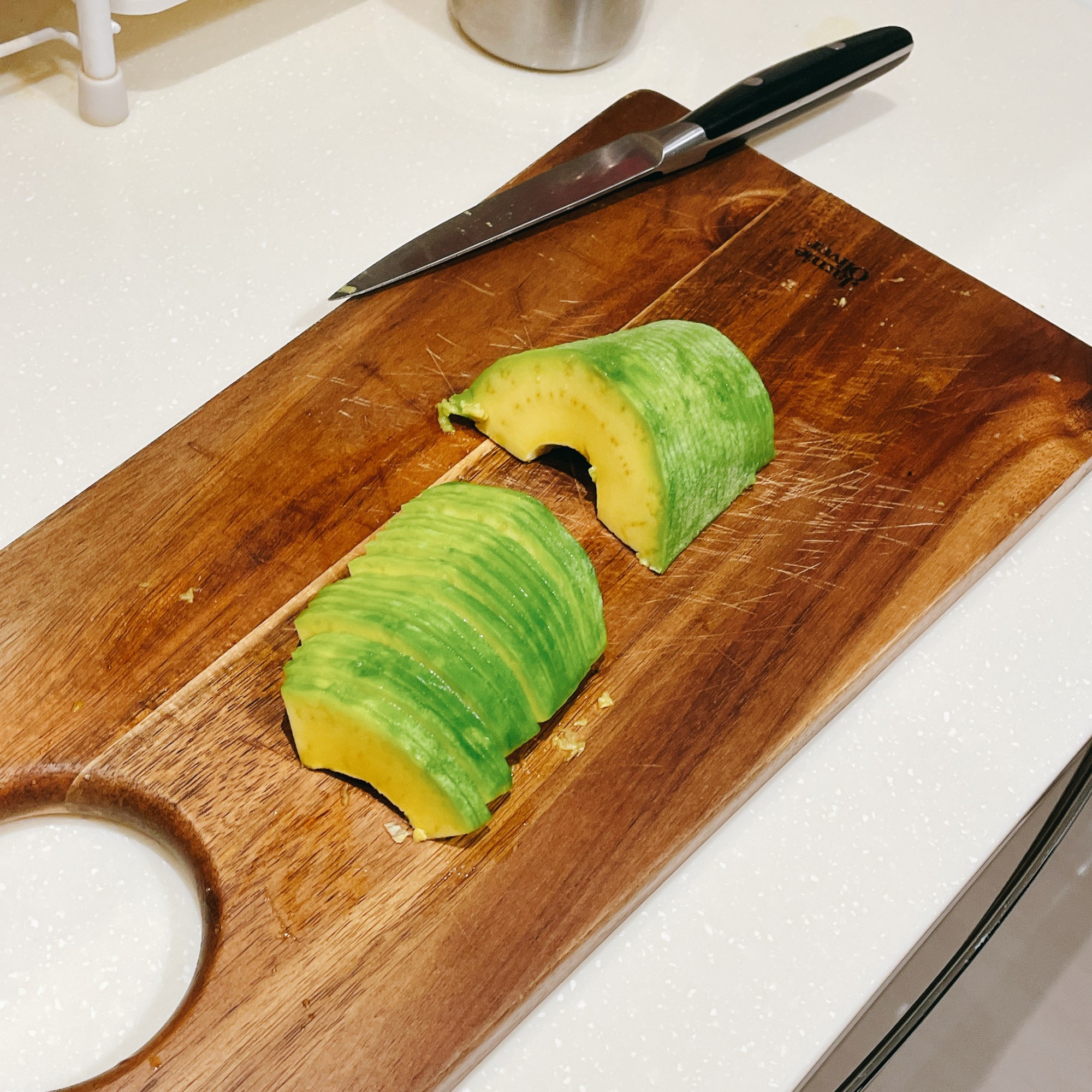切開後的酪梨如果無法一次用完,記得切個萊姆角(lime wedge)仔細塗抹嚕遍剖面後、用保鮮膜仔細包覆保存,大概3天內都能維持表面鮮豔黃綠色喔!
