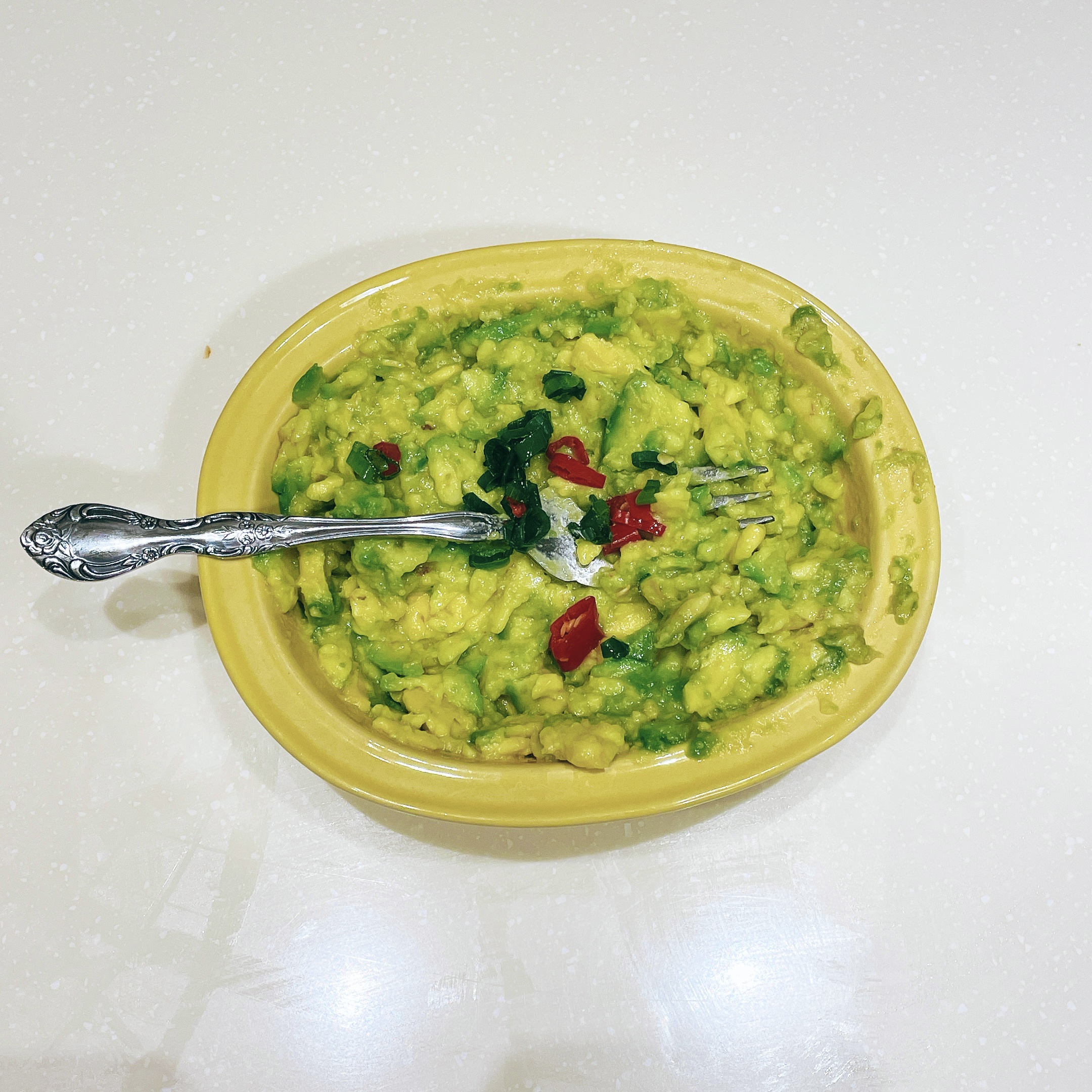 傳統酪梨醬食譜都有加香菜(cilantro),但夏天颱風肆虐後所有蔬菜暴漲讓煮婦擅自幫香菜『請假』缺席,由冷凍蔥花補位的酪梨醬風味不減喔!