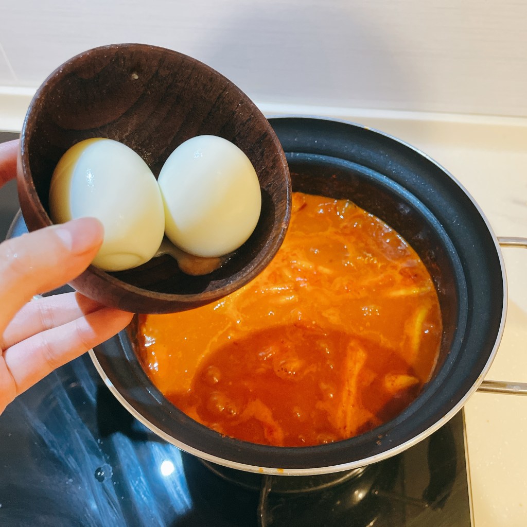 緊接著入鍋的是剝殼的蒸雞蛋(2顆),