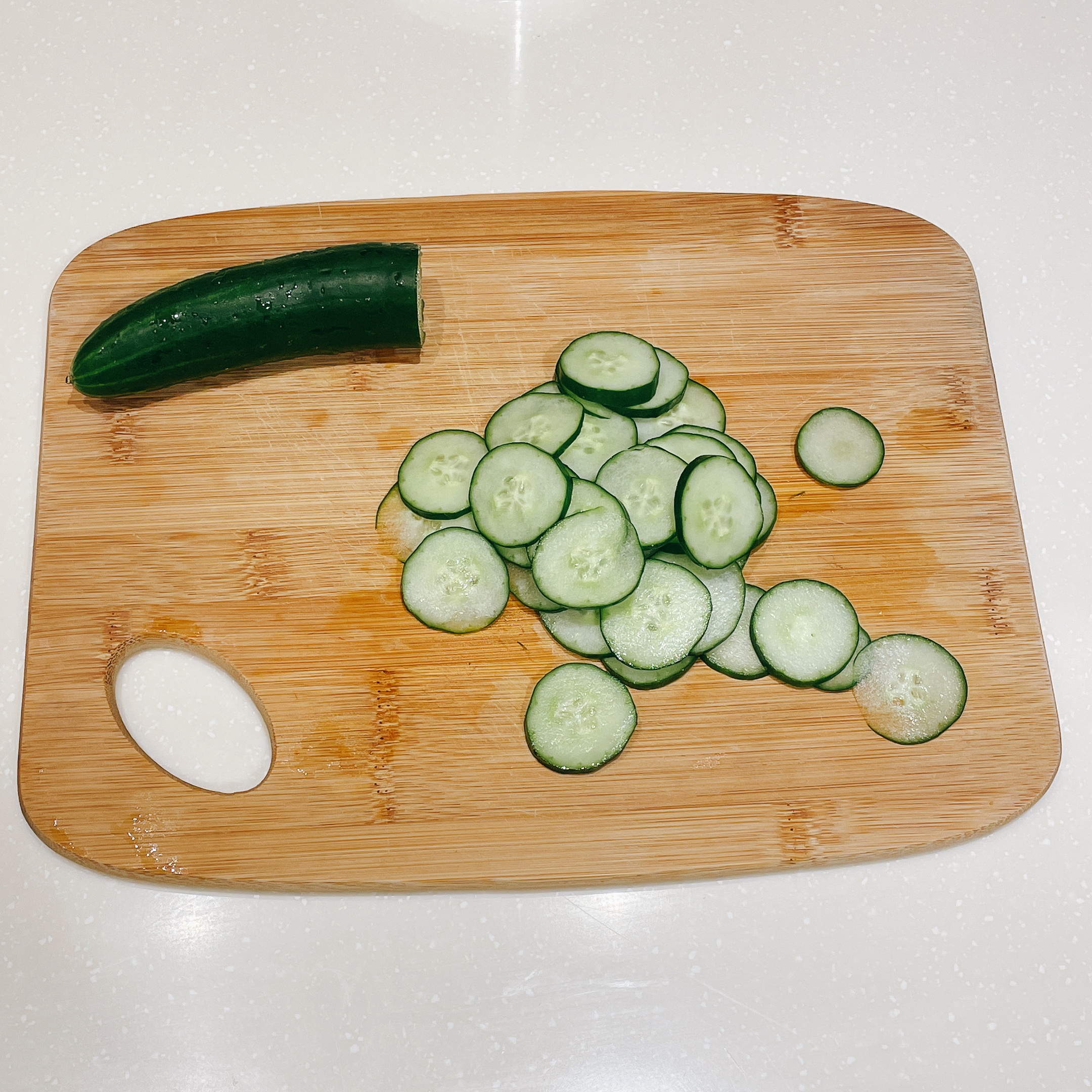 #3 小黃瓜切薄片、洋蔥切碎泡水