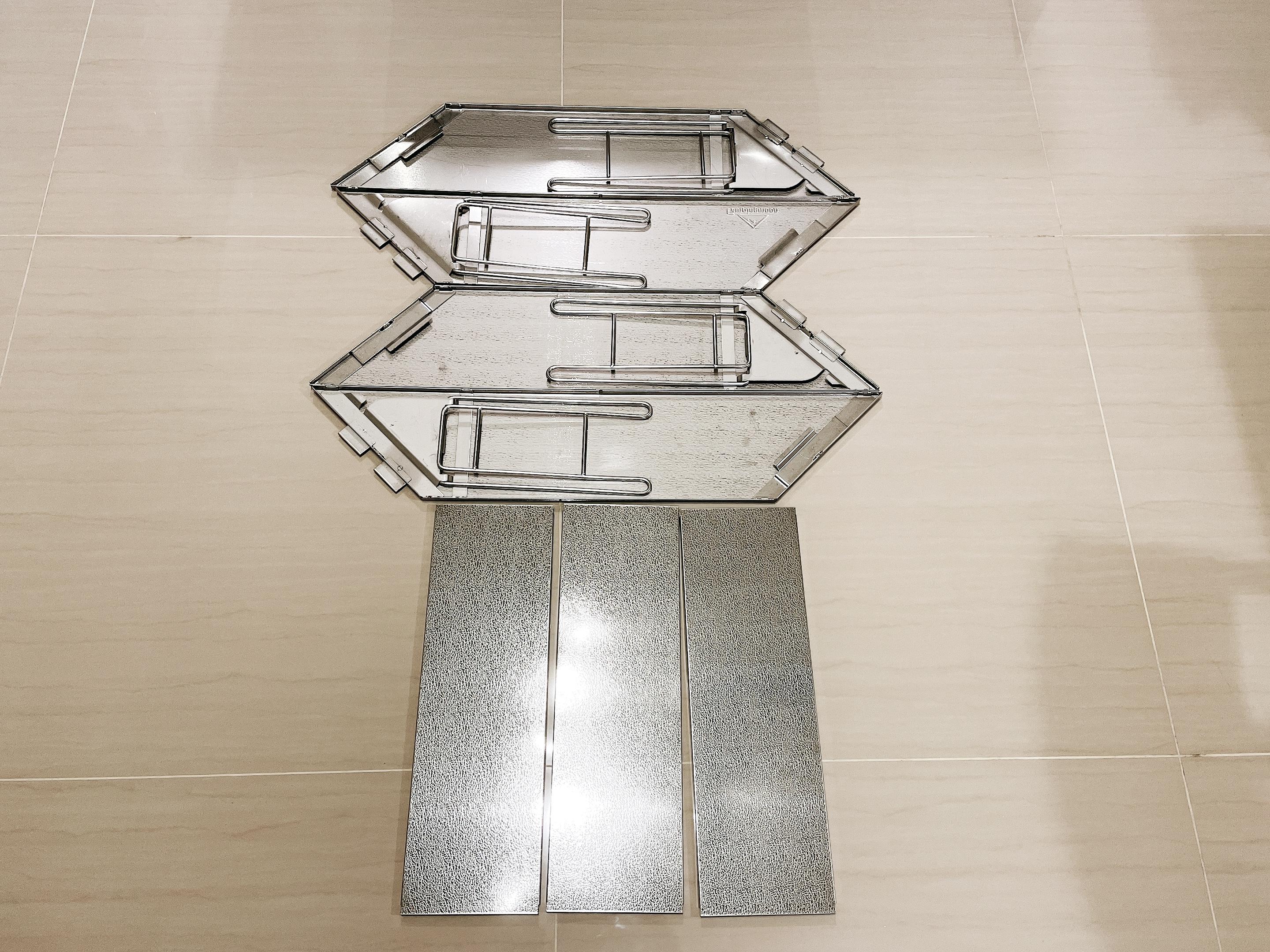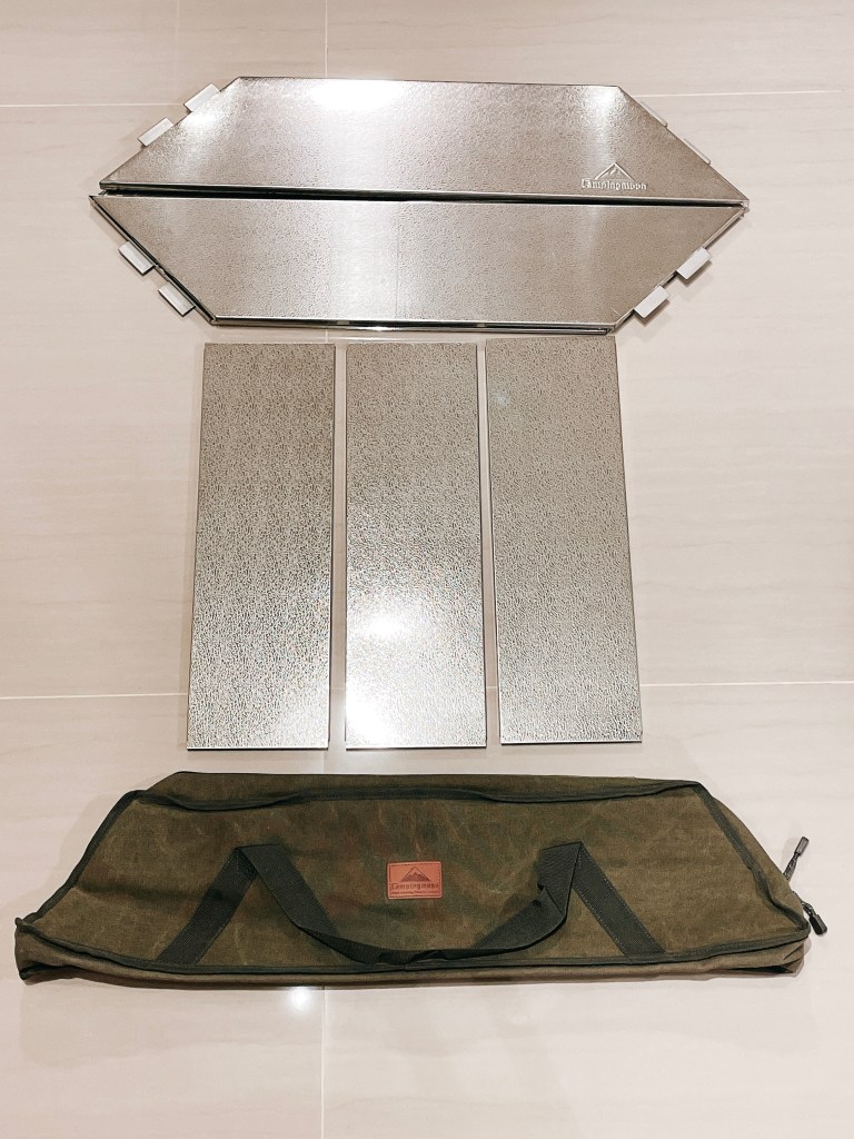 CAMPINGMOON圍爐桌相當簡易,內容物只有梯形桌板(4片)、層板(3片)。