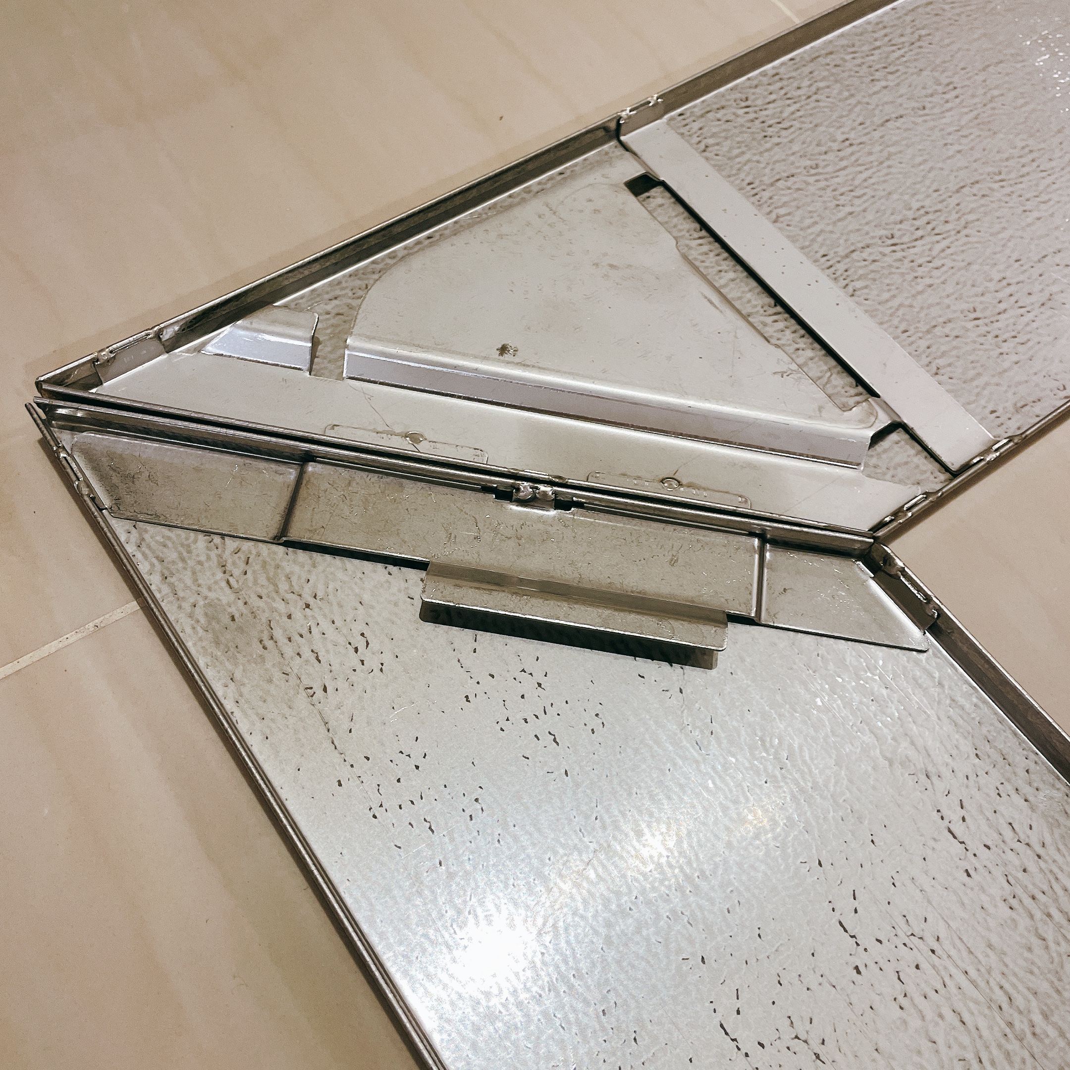 首先務必戴上工作手套以防刮傷纖纖玉手,將梯形桌板(4片)拼接成一個正方形,接著就能打開折疊桌腳。