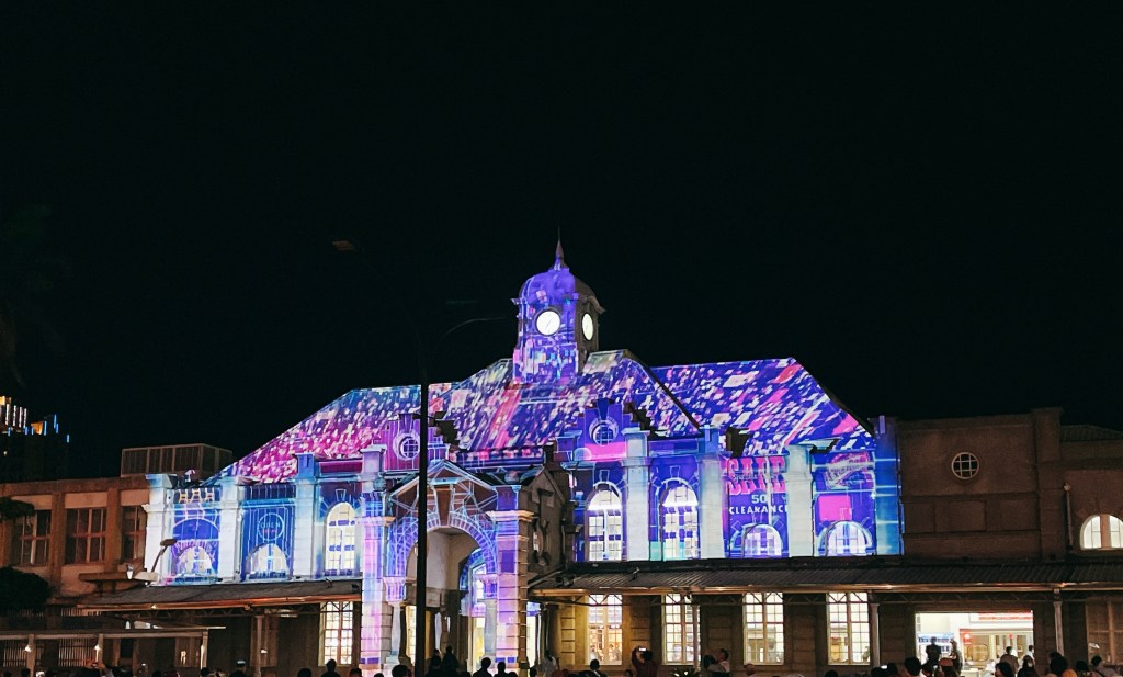 NAKED團隊延續2012年東京車站光雕影展,粒子傳輸至新竹車站講述光束的環遊世界故事。