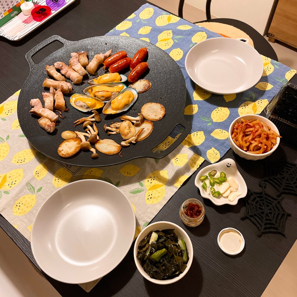 建議可將油脂豐富的肉品(例如:厚切豬五花)放置烤盤中心,由內而外可鋪上蔬菜、菇類或海鮮,沾滿豬五花油脂的烤菇和馬鈴薯片簡直是人間美味!