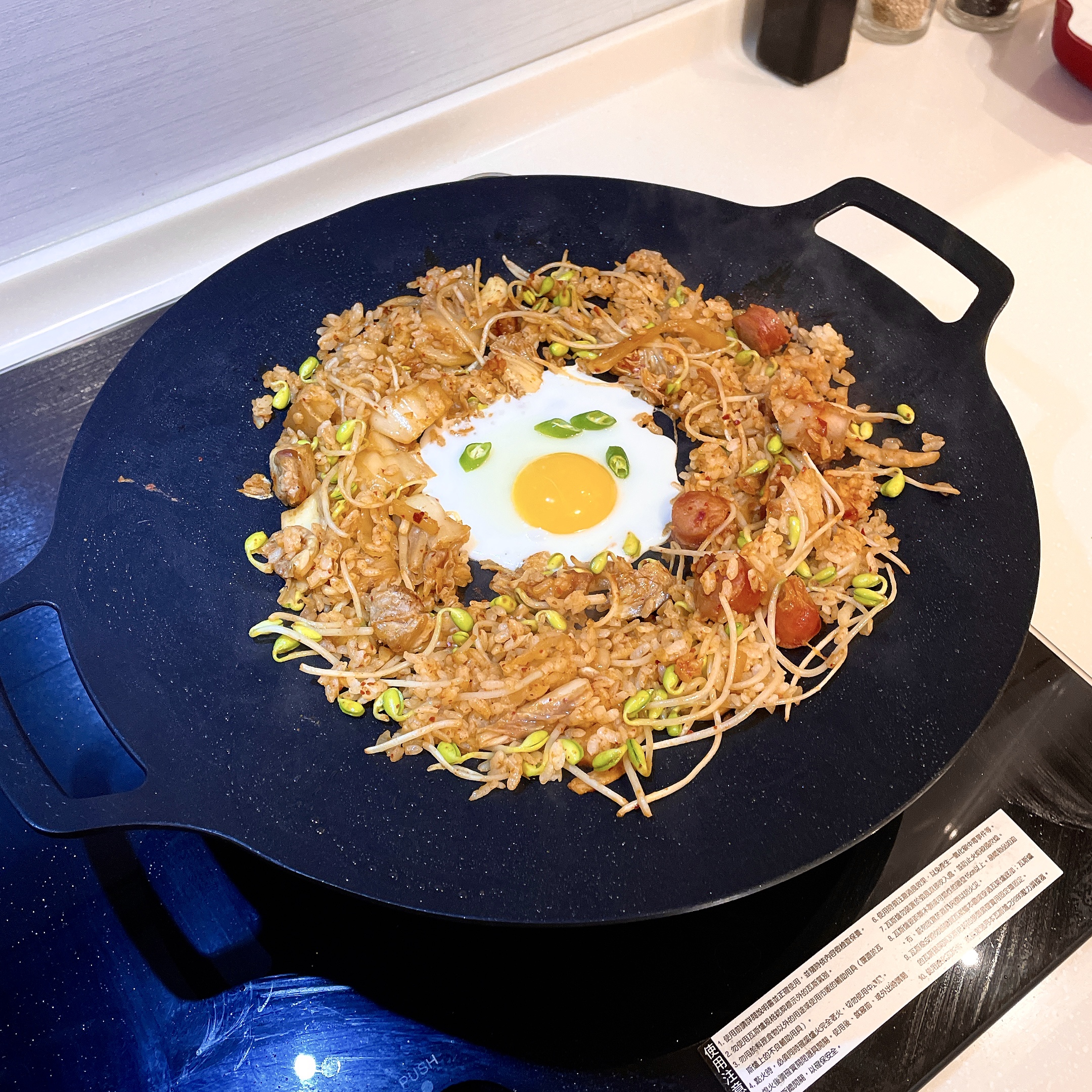 烤一盤測試 五花肉/淡菜/菇菇/泡菜炒飯