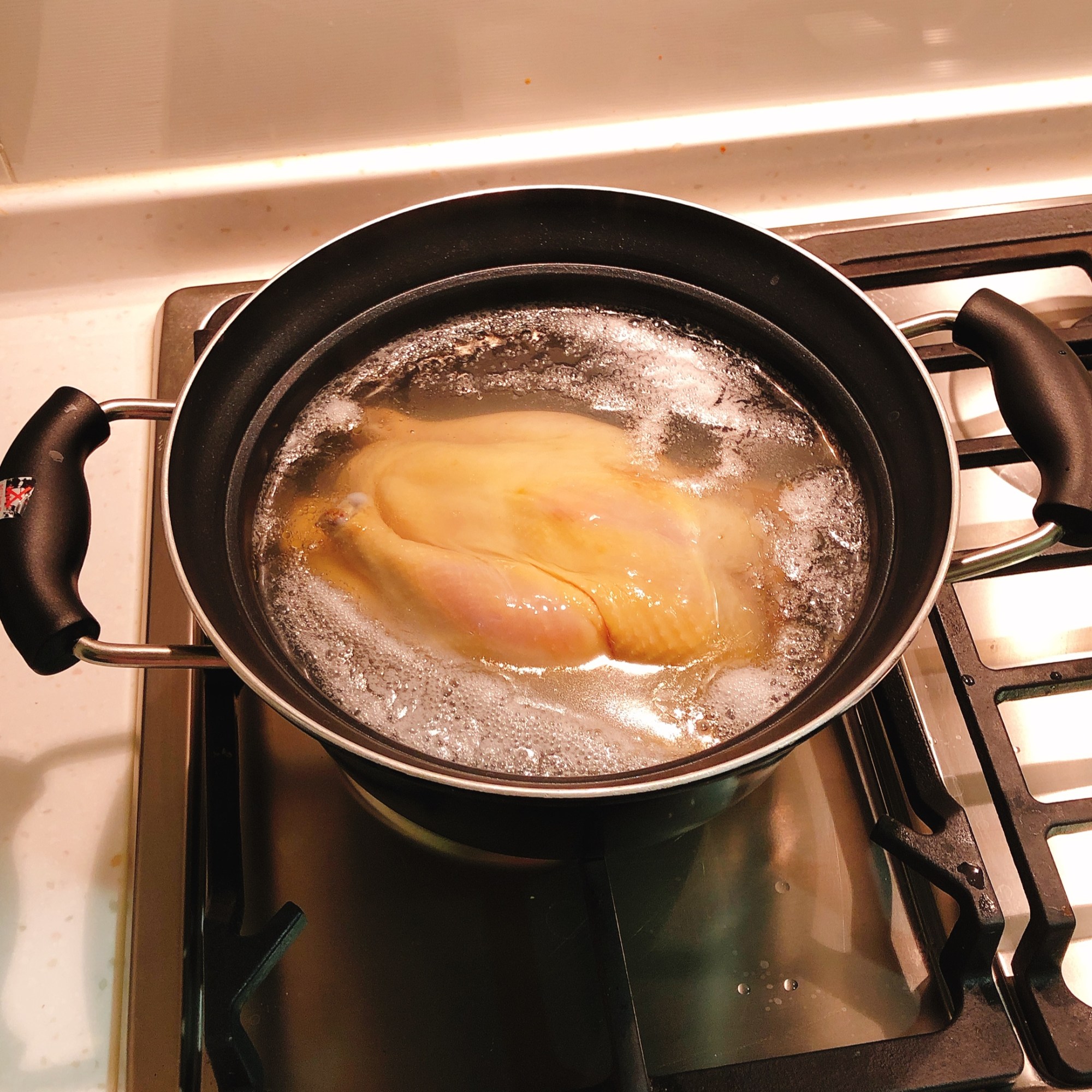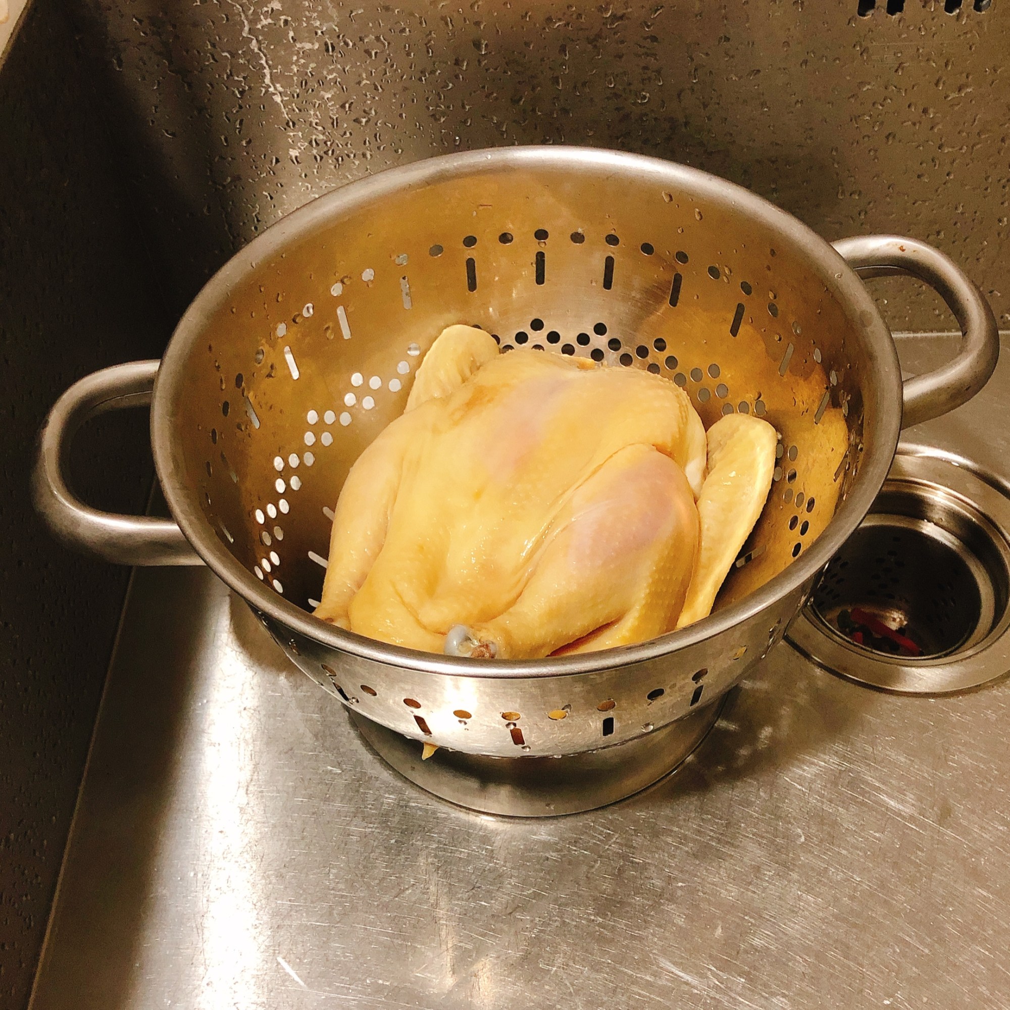 沖洗全雞時可使用濾盆(colander)輔助,以免雞泡在鍋裡不好洗淨。